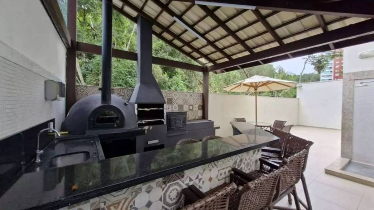 Conta com churrasqueira a carvão, mobiliado e totalmente equipado, pronto para morar.