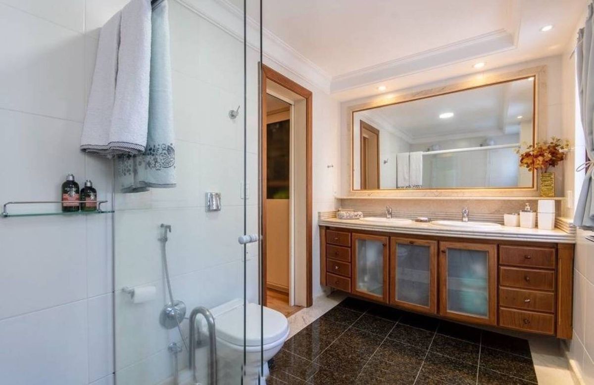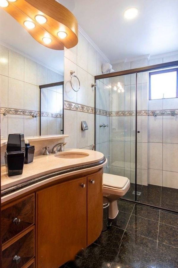Composto por 5 suítes, 2 com closet, 1 sala íntima/tv, 4 sacadas, churrasqueira a carvão, lareira, sala de estar para três ambientes, sala de jantar, área de serviços, cozinha, e lavabo, todos os ambientes climatizados.