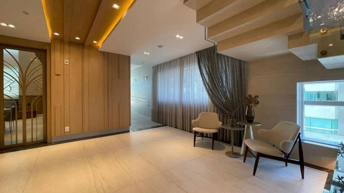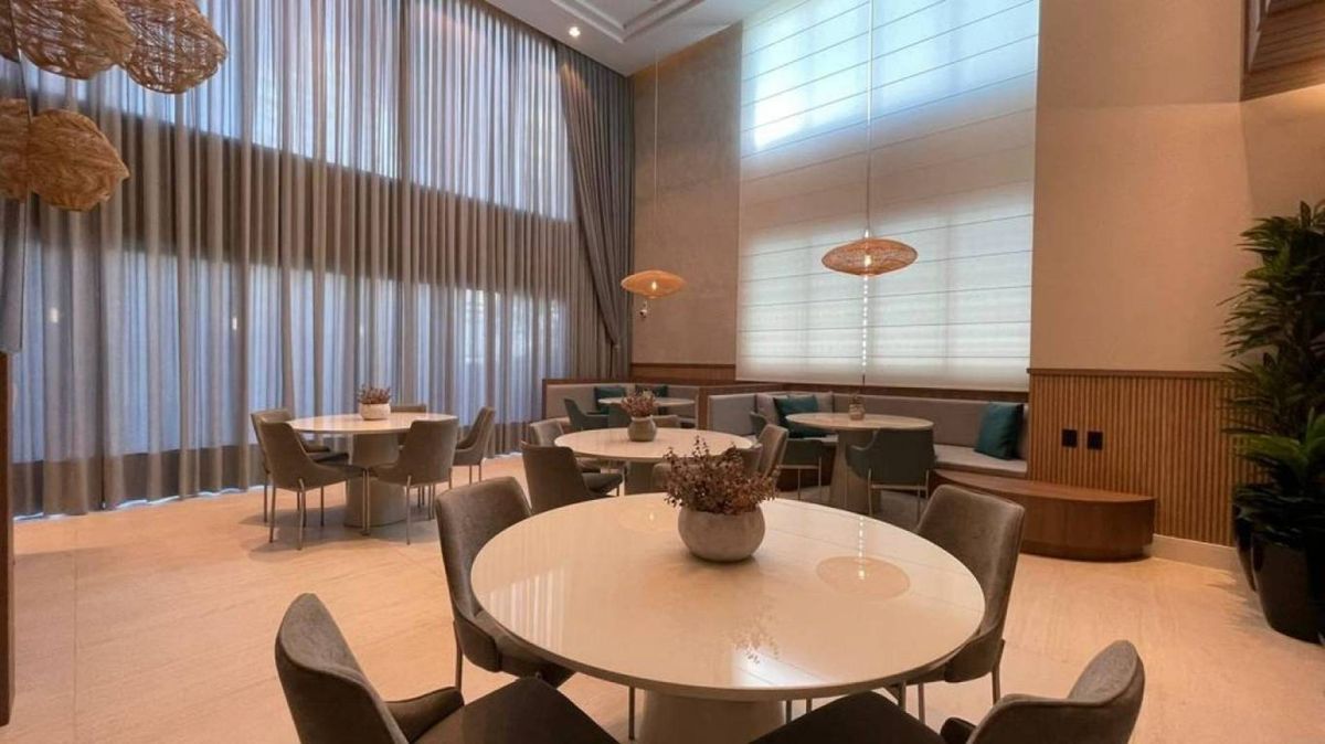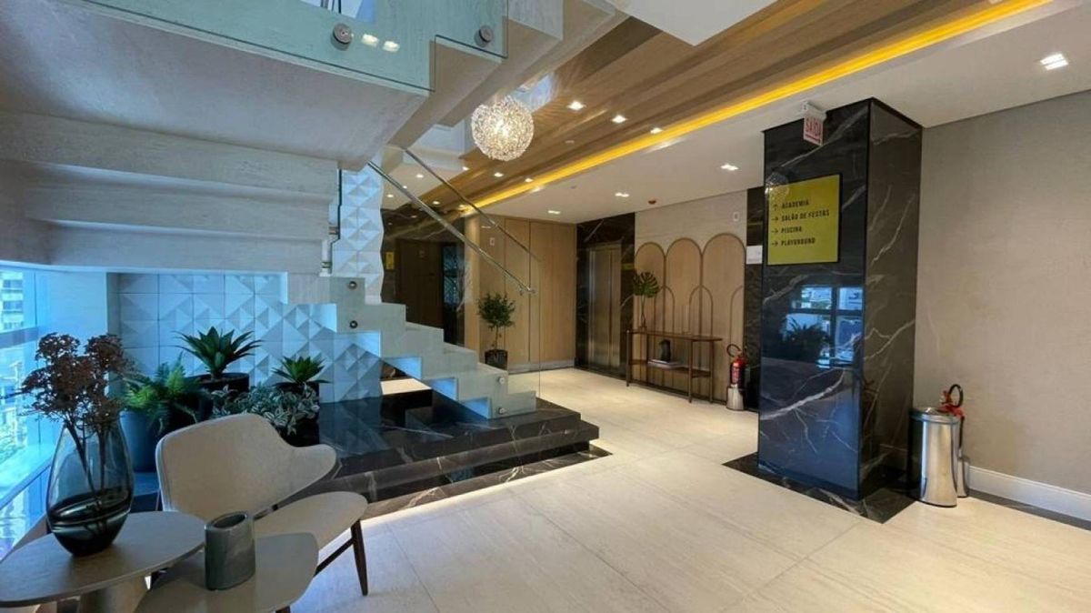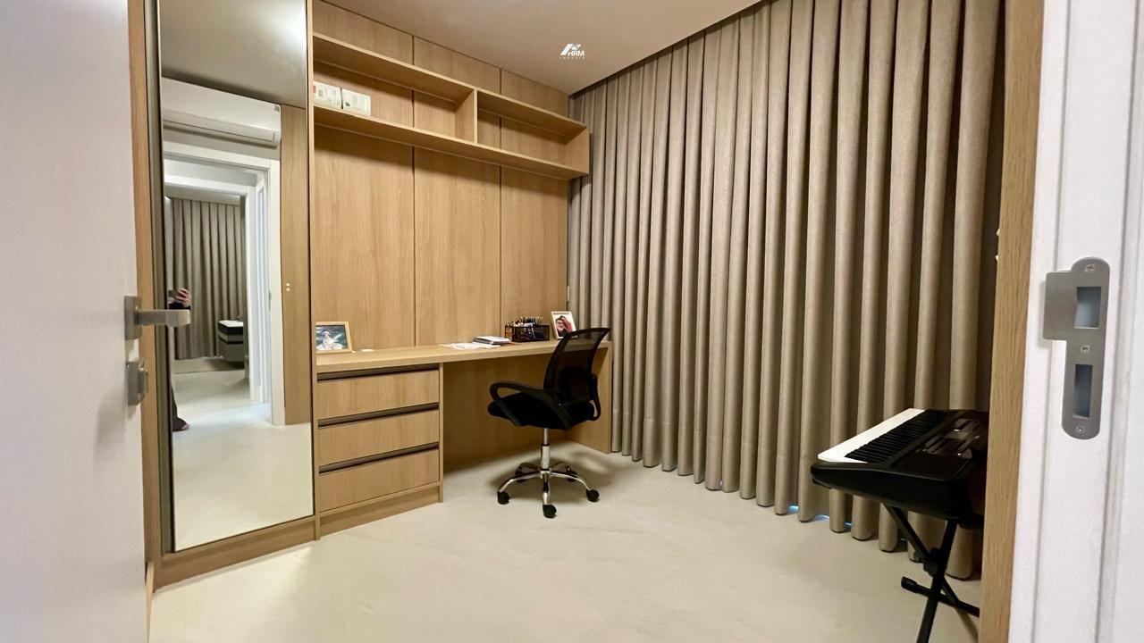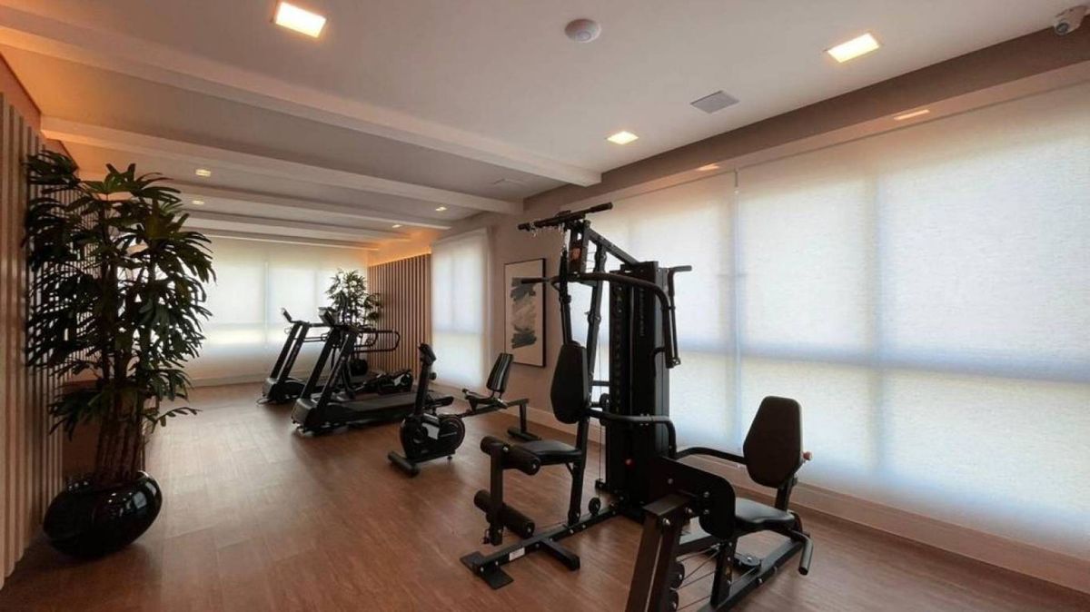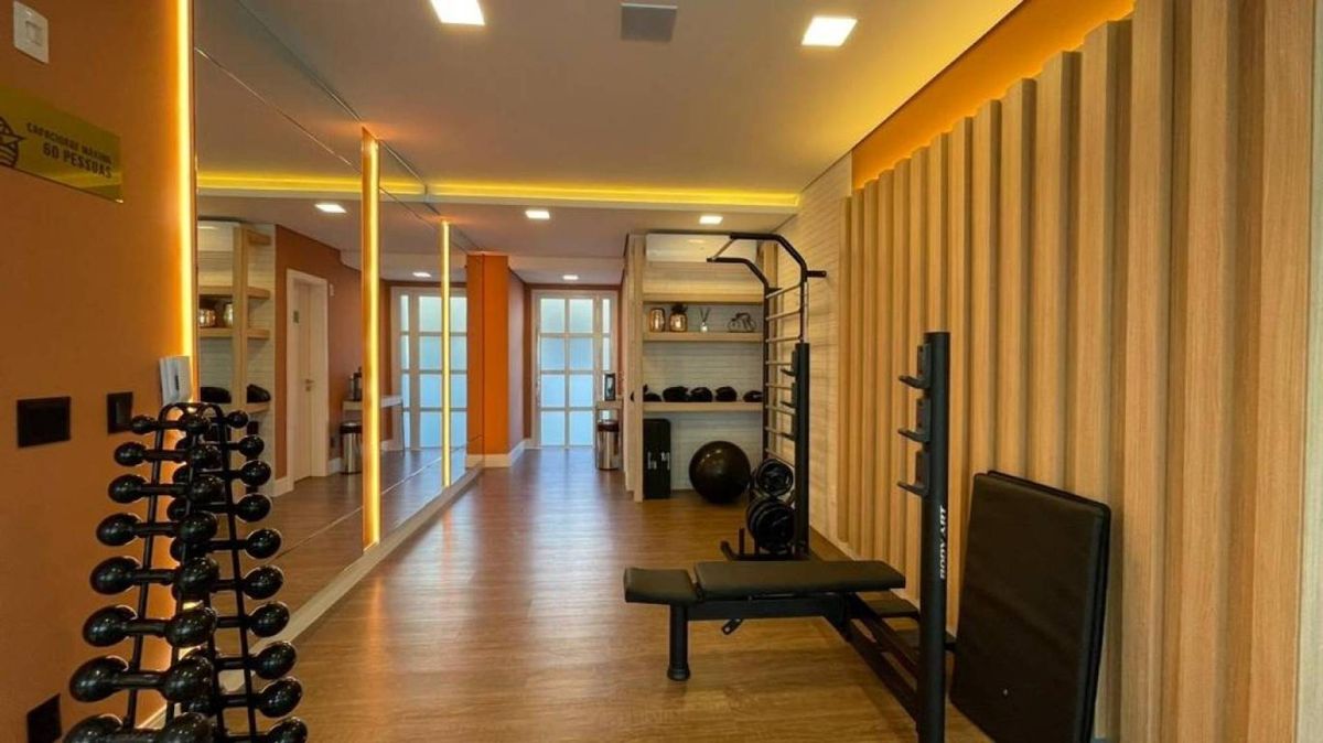 cozinha e sala integrados, lavabo, área de serviço, 3 vagas de garagem . O apartamento possui vista panorâmica para serra, churrasqueira a carvão e sol da manhã. O edifício possui portão eletrônico, porteiro eletrônico com cadastro facial lhe proporcionando mais segurança, hall de entrada, salão de festas, academia, piscina aquecida e 2 elevadores.