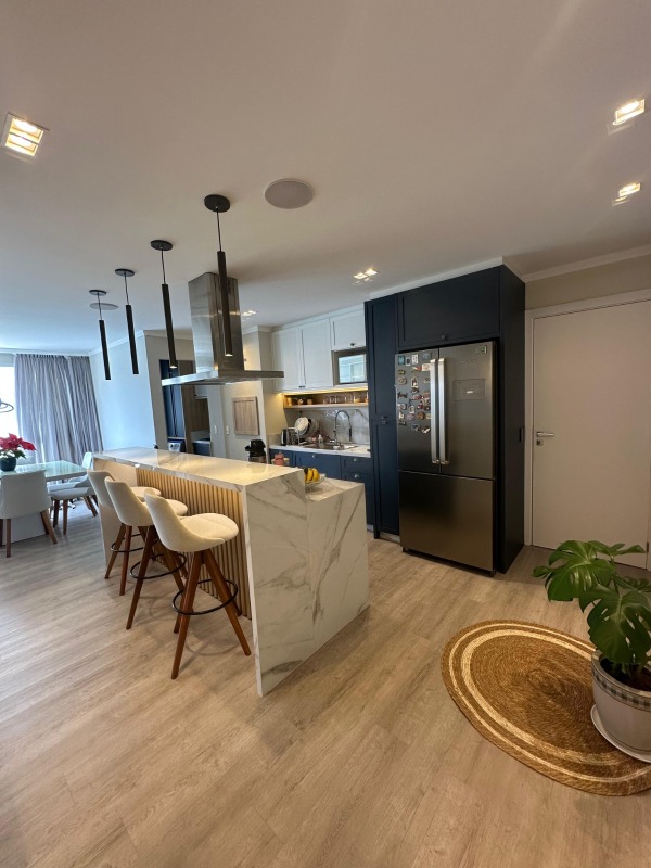 Ótimo apartamento totalmente mobiliado, decorado e equipado. Originalmente com 3 dormitórios, hj está com a configuração de 2 dormitórios (sendo uma suíte), amplo living da sala de estar e jantar, cozinha americana, banheiro social, lavanderia. 02 Vagas de garagens privativas.