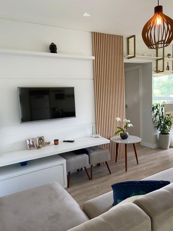 Composto por 02 quartos, sala de estar e jantar, sacada integrada com churrasqueira a carvão.