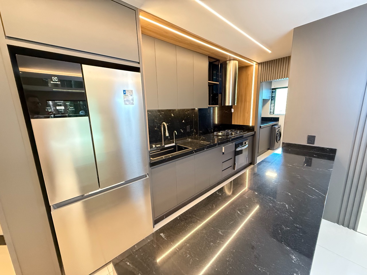 Composto por 03 quartos (sendo todos suítes), ampla sala de estar e jantar, lavabo, cozinha, lavanderia, sacada e 02 vagas de garagem privativas.