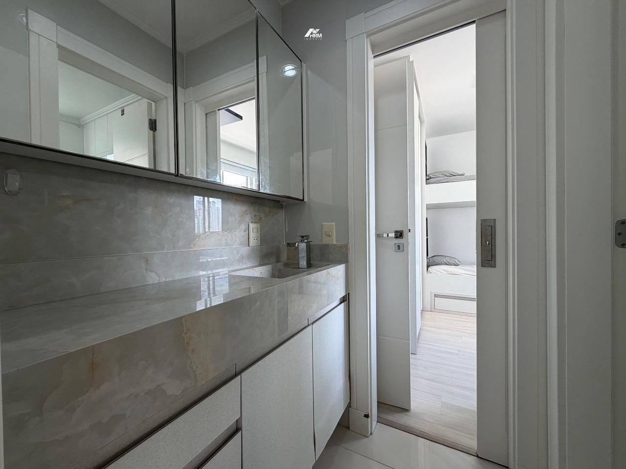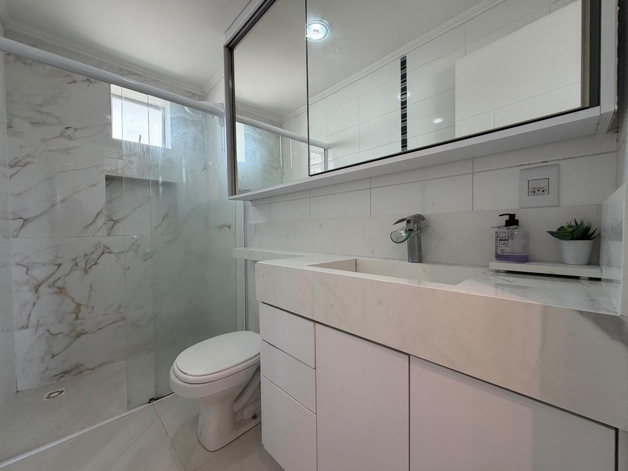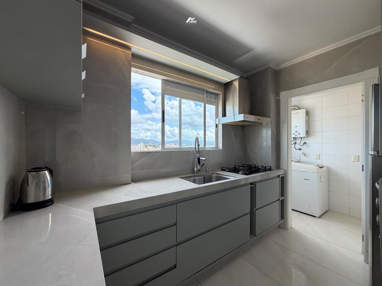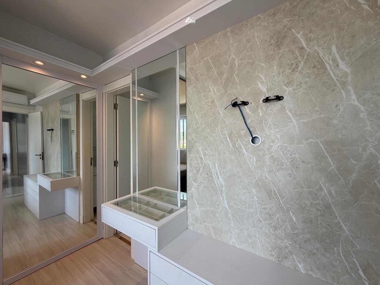 Composto por 03 suítes (sendo uma suíte e duas demi), ampla sala de estar com sacada, churrasqueira a carvão, cozinha com lavanderia, aquecimento a gás.