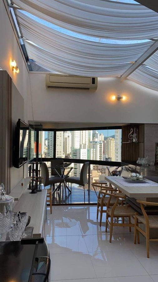Apartamento cobertura duplex mobiliado em Balneário Camboriú ,composto por 3 dormitórios, sendo 1 suíte, living integrado com a cozinha, churrasqueira á carvão no piso superior, vista mar e 1 vaga de garagem.