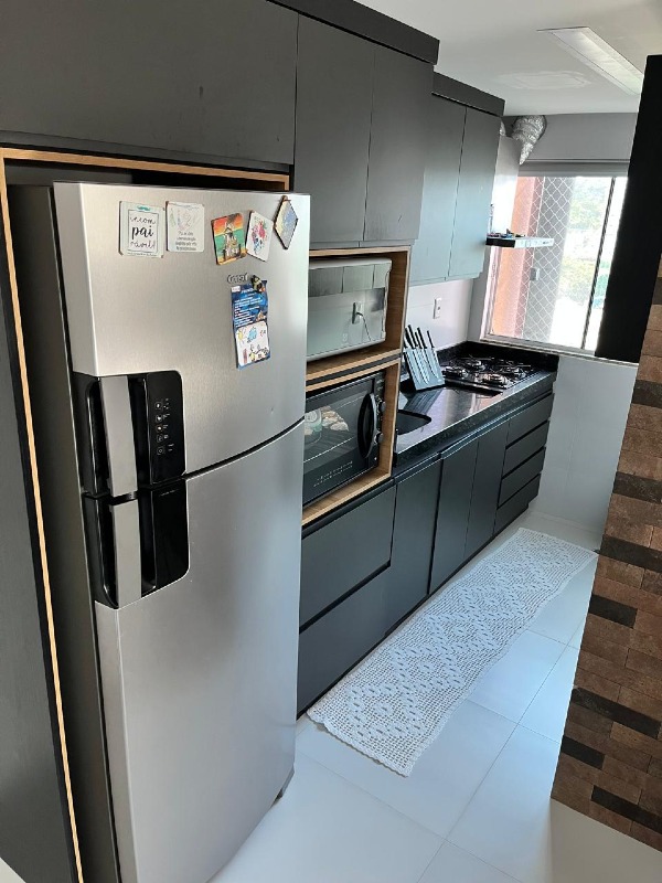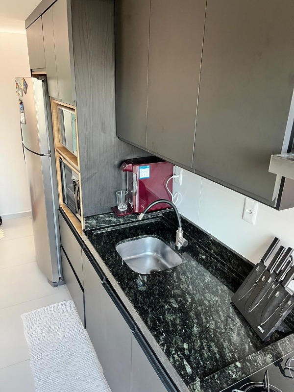 Móveis sob medidas, pias em granito, piso porcelanato.