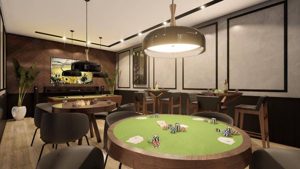 AcademiaAlarmeBicicletárioBrinquedotecaCircuito TvElevadorEspaço gourmetEstar SocialHall de entrada decorado e mobiliadoInterfoneInternetPiscinaPiscina adultaPlaygroundPubSala de jogosSalão de festas