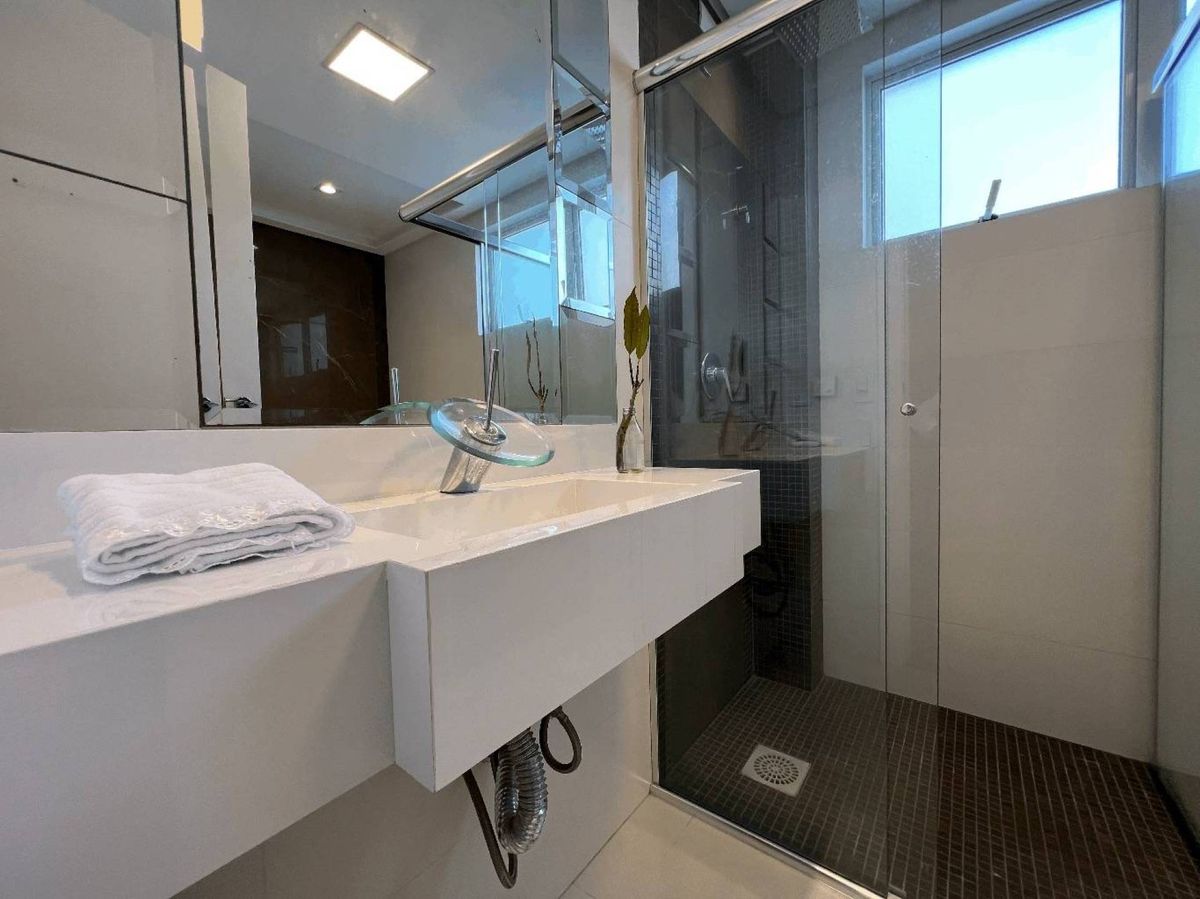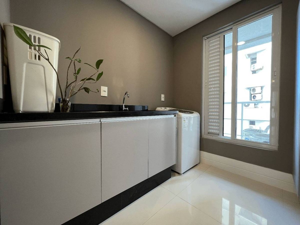 Imóvel com 03 suítes, living integrado, lavabo, lavanderia separada, rouparia no espaço para circulação e 02 vagas privativas.