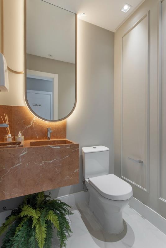 A área interna é composta por living integrado, sala de estar e sala de jantar, proporcionando ambientes amplos e bem iluminados. Conta com lavabo, banheiro auxiliar e banheiro de serviço, além de cozinha funcional com excelente distribuição e área de serviço independente. O imóvel dispõe ainda de closet, acabamento em gesso, ar-condicionado instalado e sistema de aquecimento a gás com gás individual.