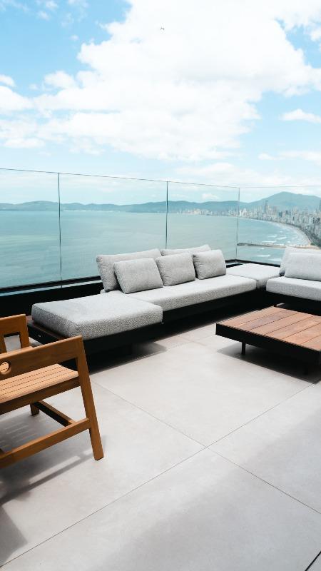 Apartamento de alto padrão frente mar definitiva, com exclusividade de um apartamento por andar, oferecendo privacidade e uma vista permanente e deslumbrante do oceano. Possui 335m² de área total e 150m² de área privativa, com ambientes amplos e bem integrados.