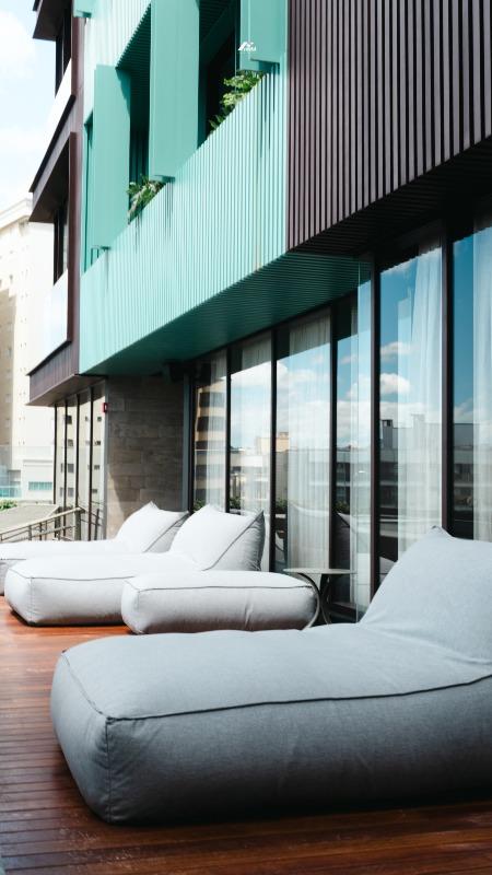O edifício oferece lazer completo no 5º pavimento, com academia, piscina térmica, spa, sauna seca, salão de festas, espaço gourmet, sala de jogos e lounge com fireplace, além de hall de entrada decorado, guarita de segurança, entrada para banhistas com box de praia e rooftop no 26º andar com vista panorâmica.