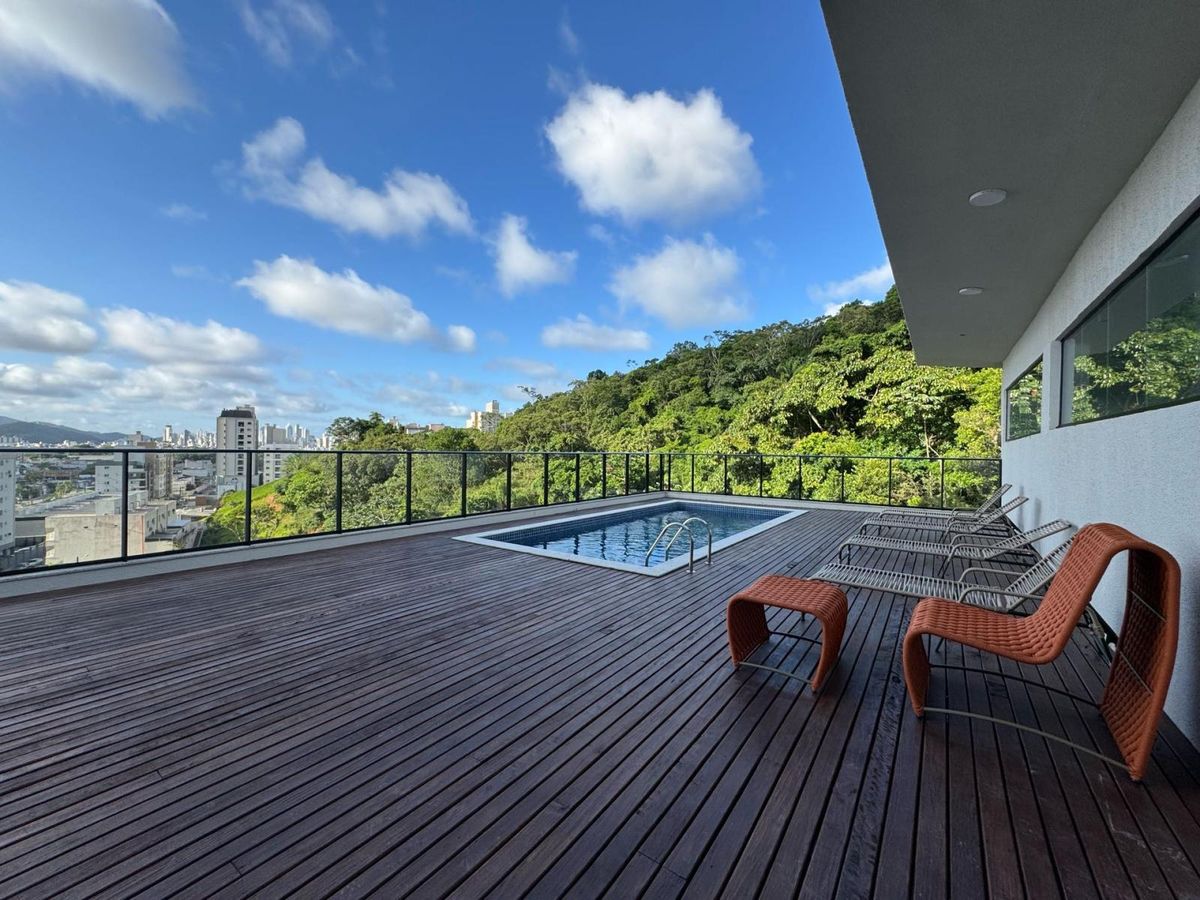 O prédio dispõe de uma piscina, elevador, salão de festas e área de contemplação em meio a natureza.