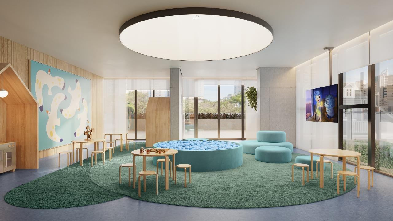 O condomínio se destaca por uma impressionante área de lazer com mais de 2.200 m², oferecendo estrutura completa de clube: piscina, salão de festas, churrasqueiras, espaço gourmet, espaço teens, pub, cinema e sala de jogos. Para o bem-estar, conta com academia Technogym, espaço yoga, spa, sala de massagem, saunas seca e úmida, beauty place e biblioteca. As crianças têm diversão garantida na brinquedoteca, enquanto a quadra esportiva atende todas as idades.