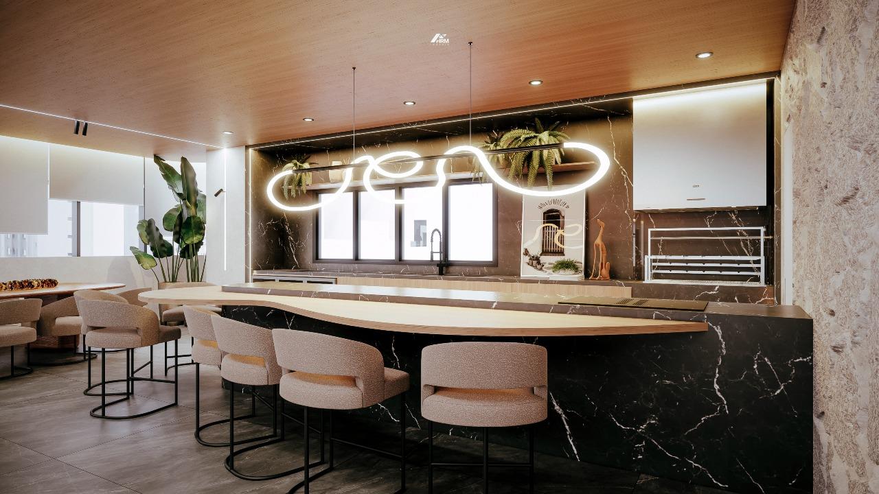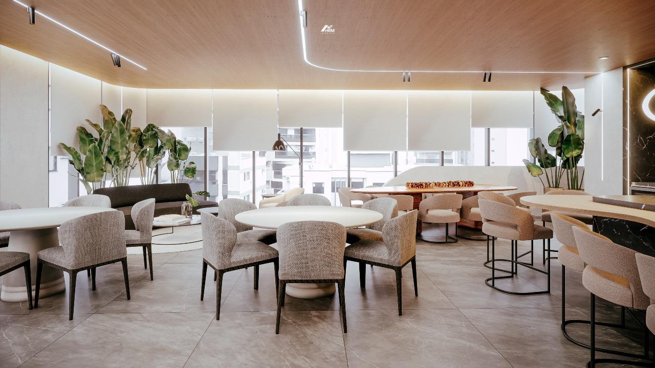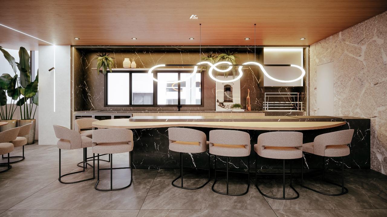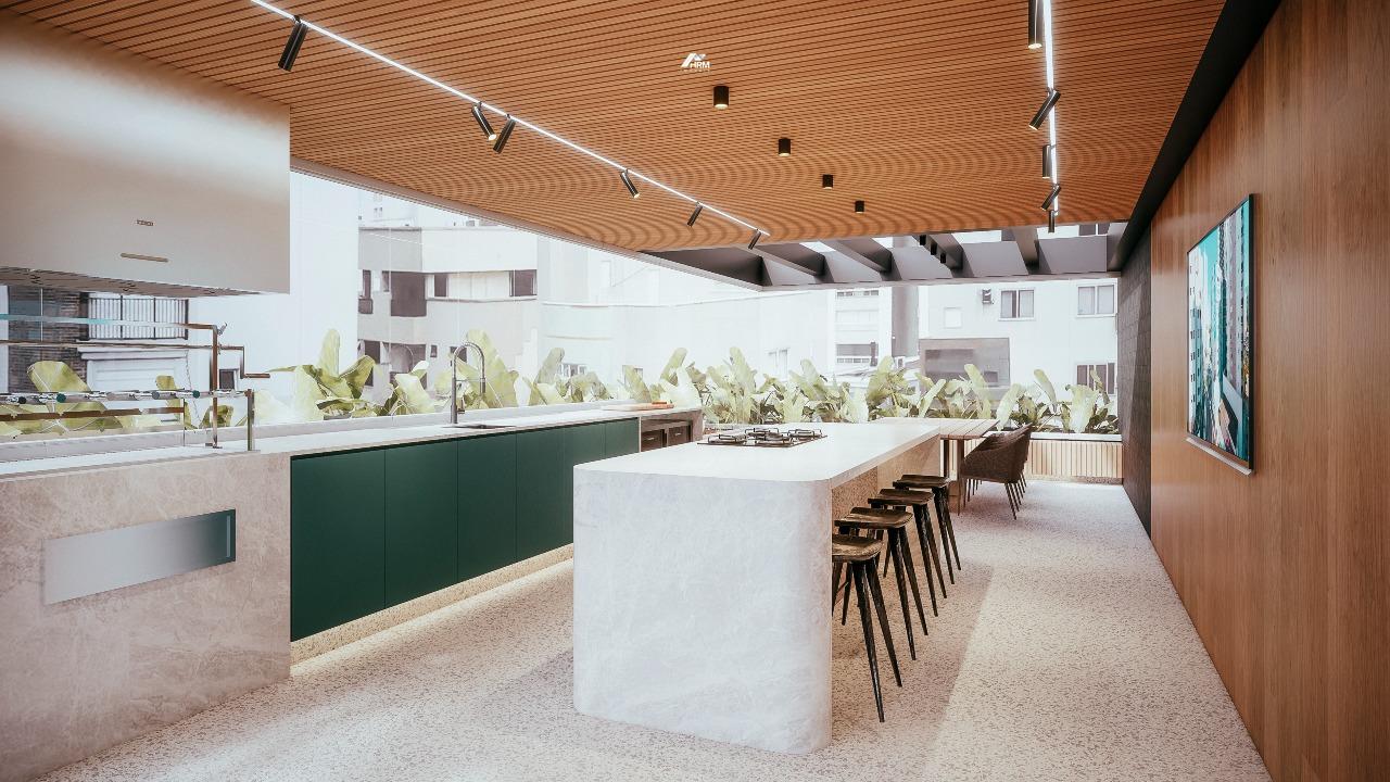A cozinha americana, equipada com despensa e área de serviço, conecta-se de forma elegante ao espaço social, enquanto o home office garante praticidade para quem trabalha em casa. Os banheiros social e suíte contam com acabamento de qualidade, incluindo piso aquecido e infraestrutura completa para ar-condicionado.