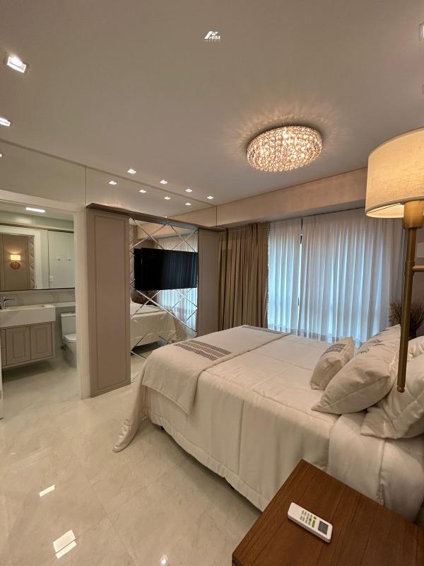 Apartamento de alto padrão, mobiliado, com vista panorâmica para o mar, pensado para oferecer conforto, segurança e lazer completo. A unidade conta com living amplo integrado à sala de estar e sala de jantar, lavabo, banheiro social e auxiliar, cozinha funcional com armários planejados, área de serviço, sacada com churrasqueira, varanda e acabamento em gesso. Dispõe ainda de hidromassagem na unidade e na piscina, infraestrutura para água quente, ar-condicionado (espera para split), fechadura eletrônica com senha, porcelanato, gás e hidrômetro individuais, internet, circuito de TV e móveis planejados, garantindo modernidade e praticidade em todos os detalhes.