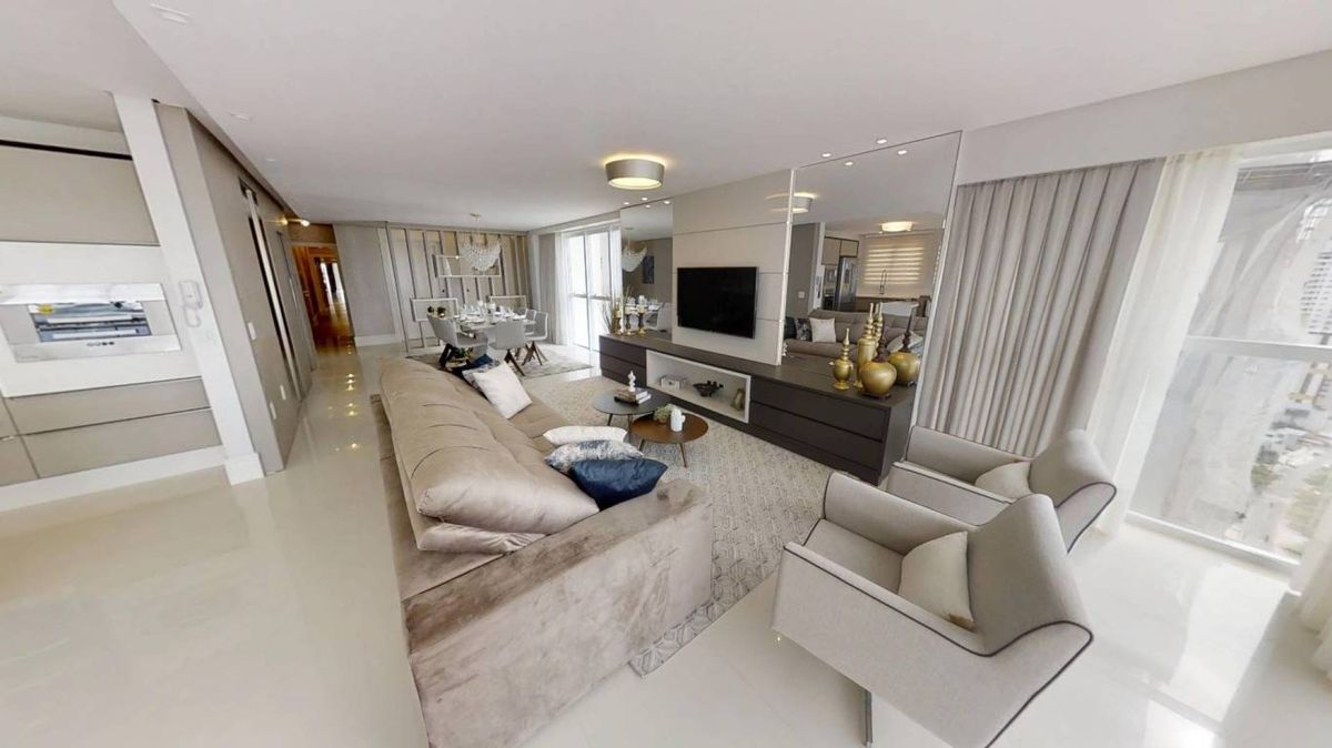 Um apartamento por andar com quatro suítes, a máster possui 42m², as outras três suítes tem equilíbrio entre si, todas com 12 m². O living é amplo, a cozinha e área de serviço estão mobiliadas e possui vista livre para o mar. As dimensões generosas dos apartamentos tipo, 237 m² de área privativa, agradam e comportam de maneira confortável toda a família.