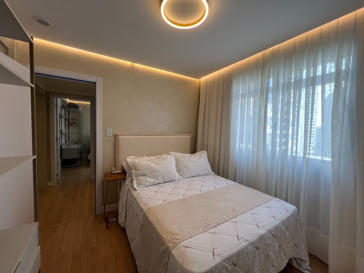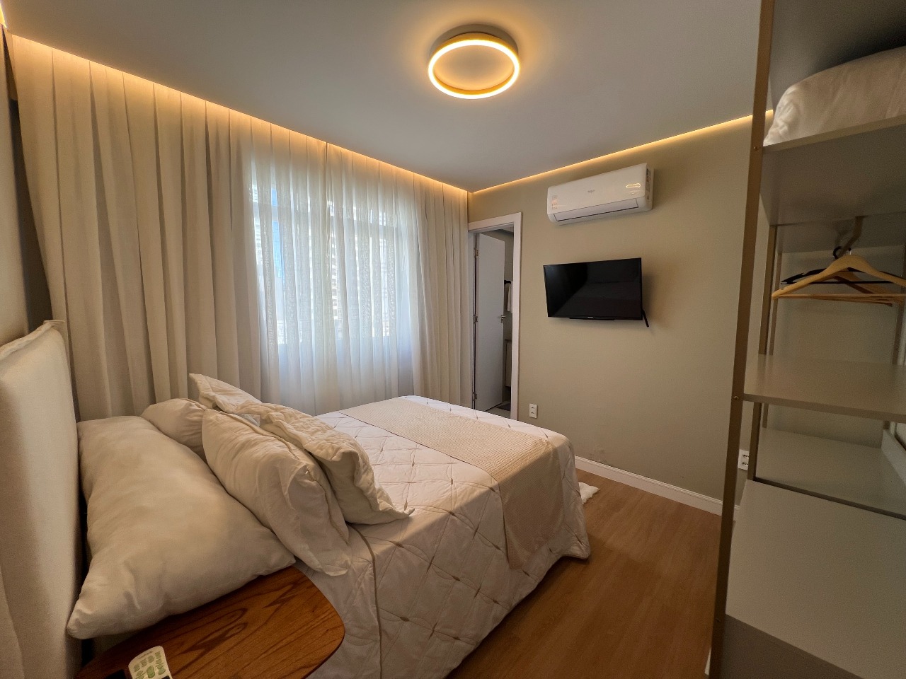 Apartamento com 83m², composto por 2 suítes, living integrado, lavabo, finamente mobiliado, decorado e equipado, ambientes climatizados, prédio frente mar, com vista mar.
