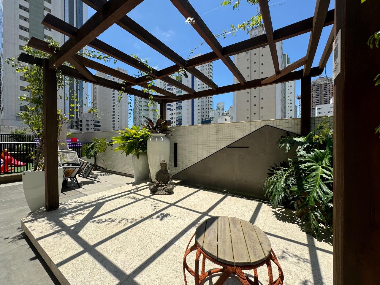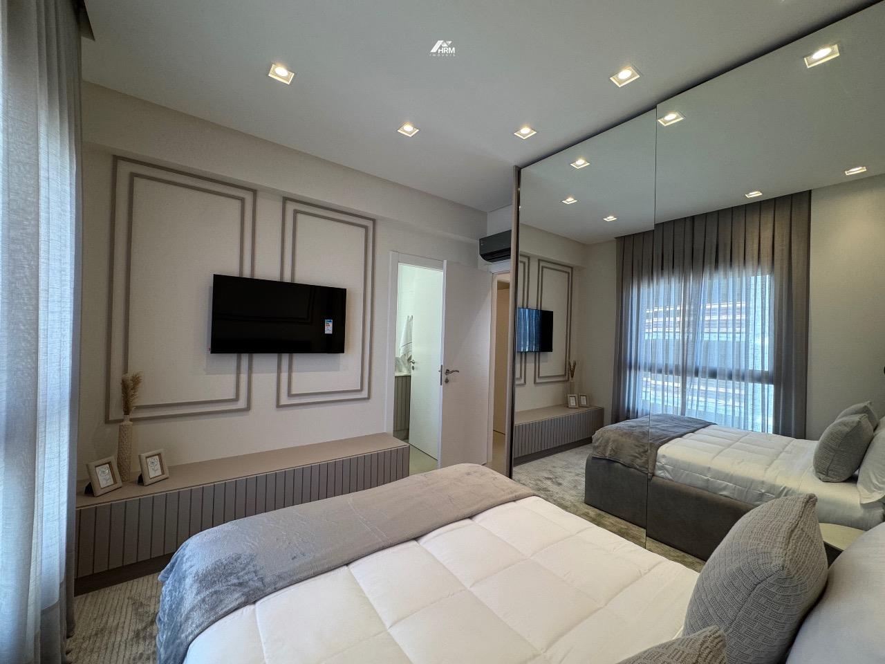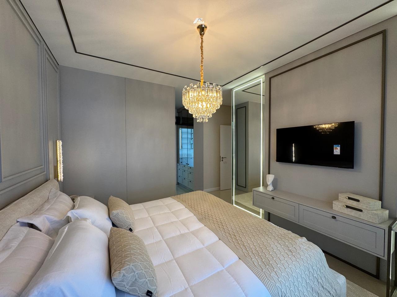 Apartamento com 3 suítes, living integrado com sala de estar e jantar, cozinha com churrasqueira à carvão e lavanderia separada, além de 2 vagas de garagem. O imóvel está 100% mobiliado e decorado, pronto para morar.
