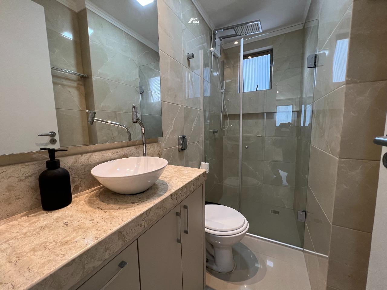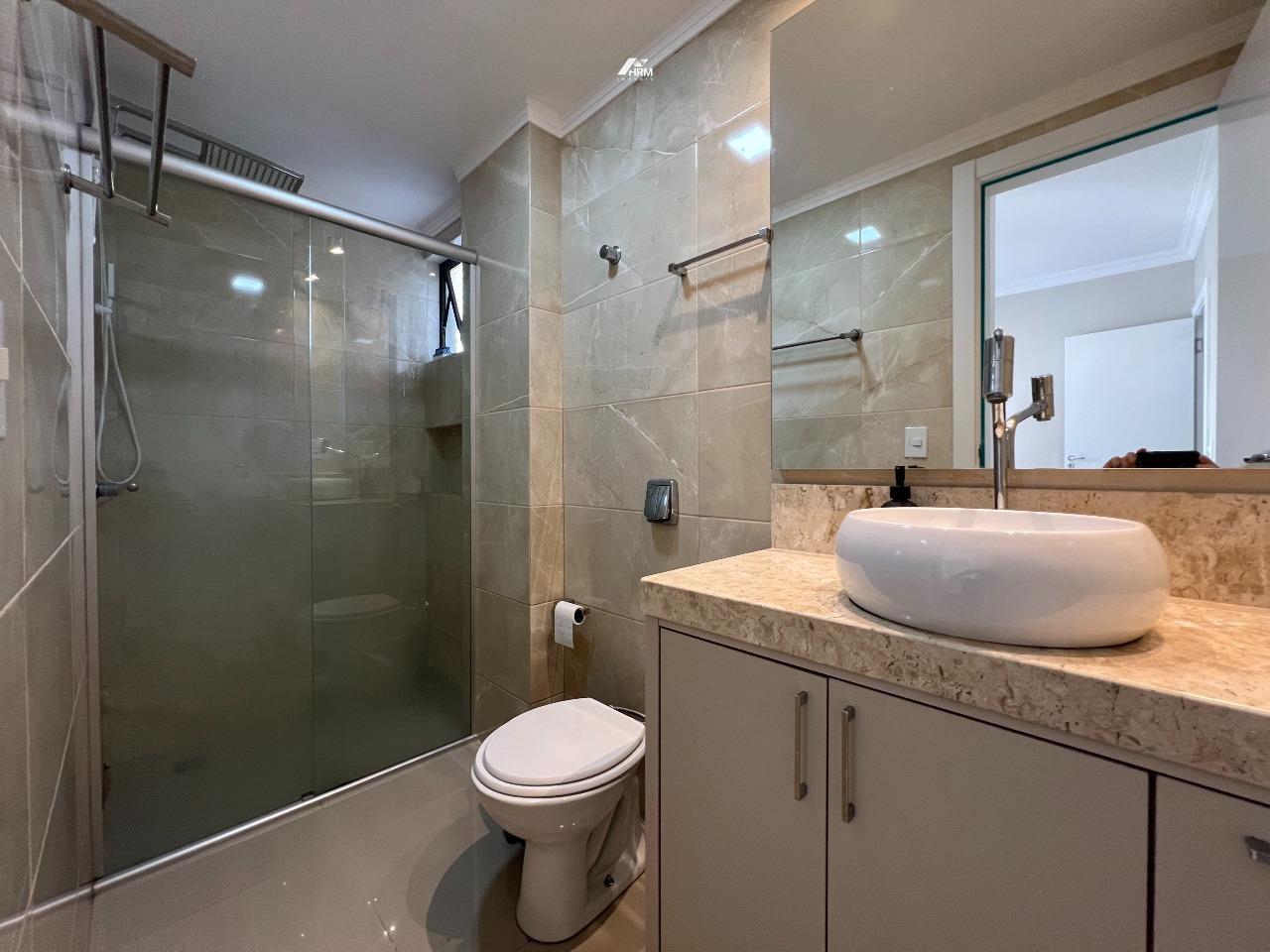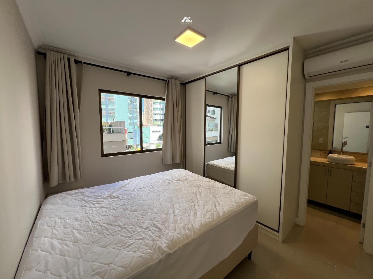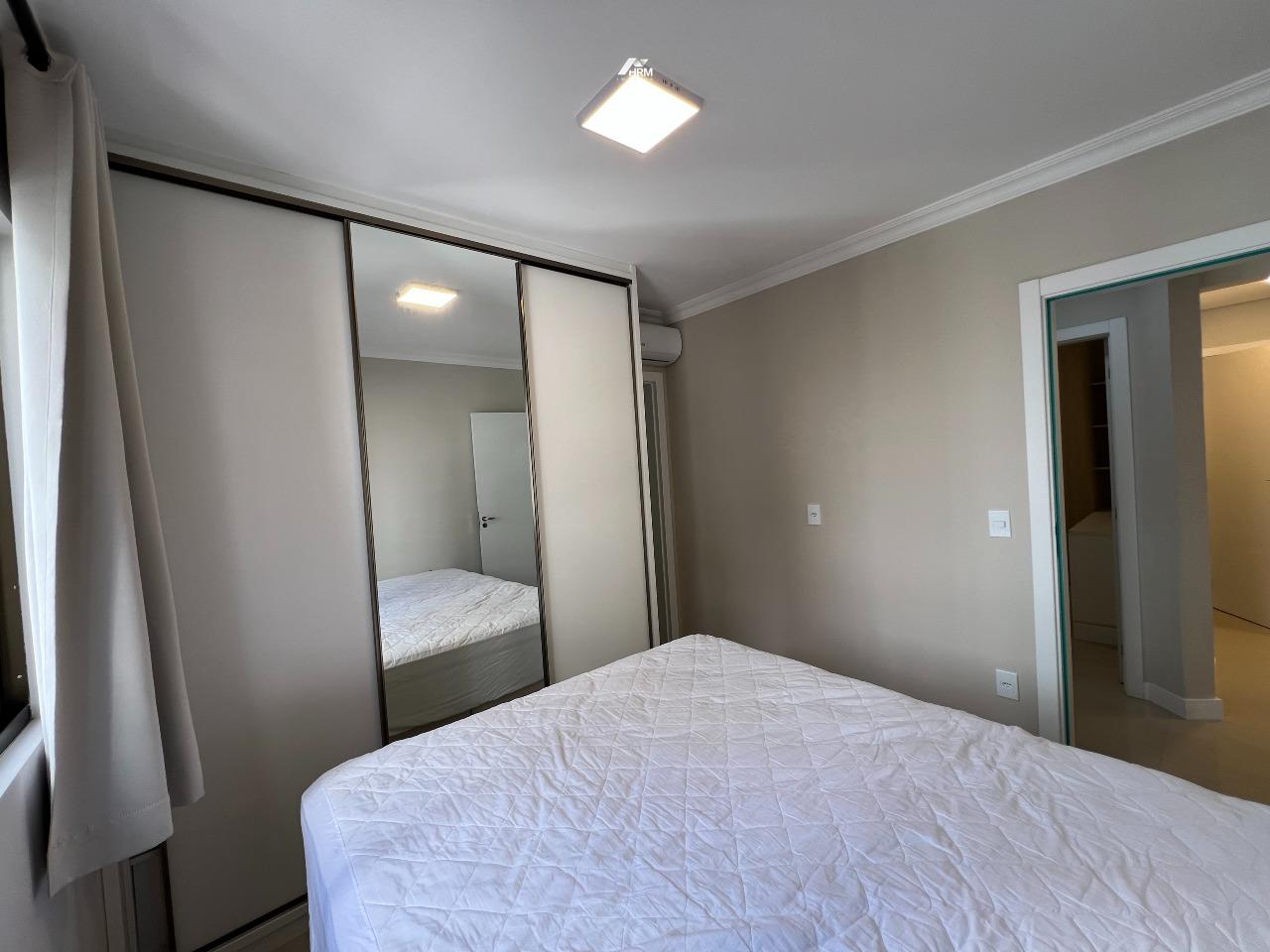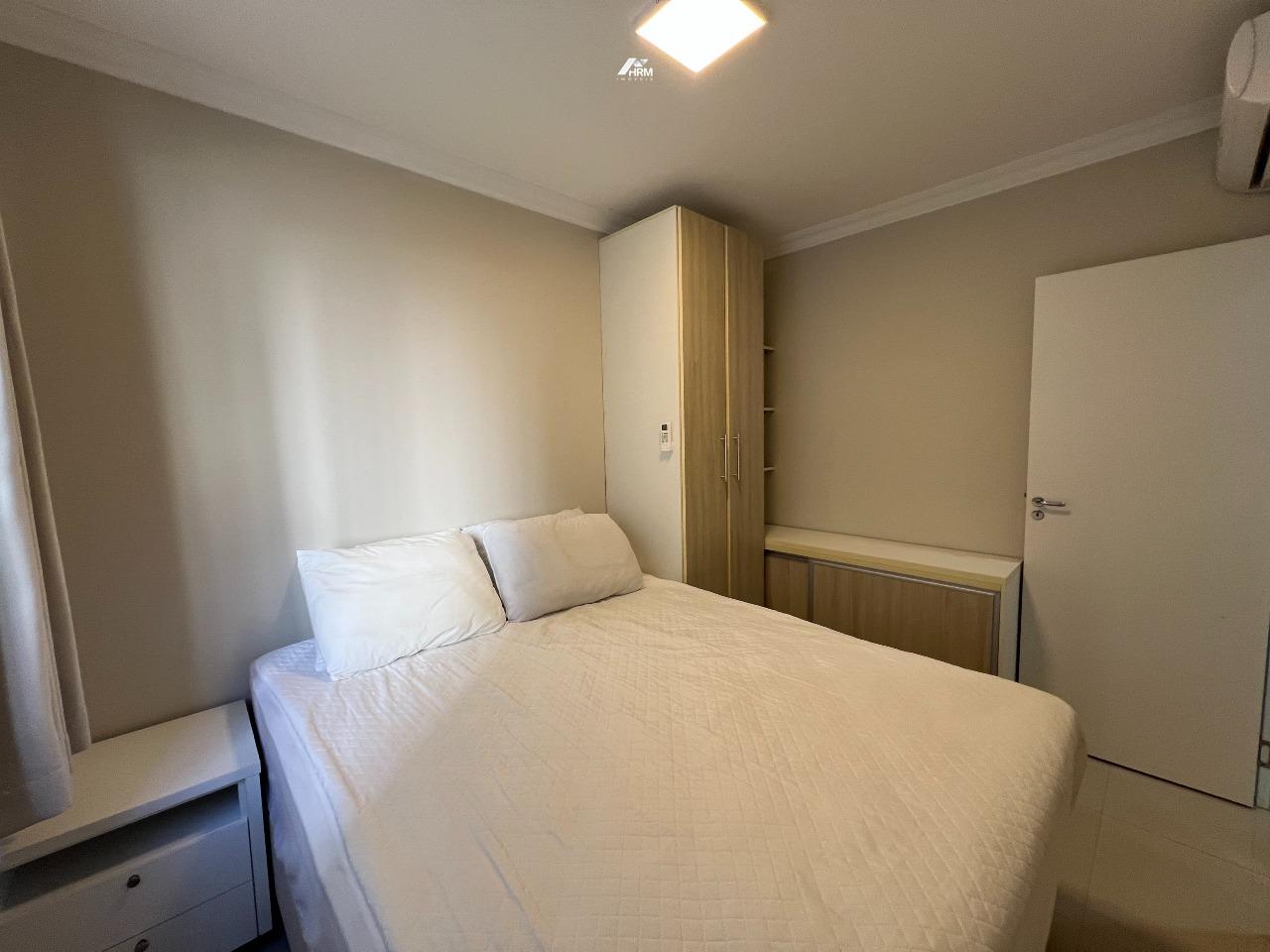 Apartamento com 78m², mobiliado, composto por 2 quartos sendo 1 suíte, living integrado com churrasqueira a carvão, todos os ambientes climatizados e 1 vaga de garagem privativa.