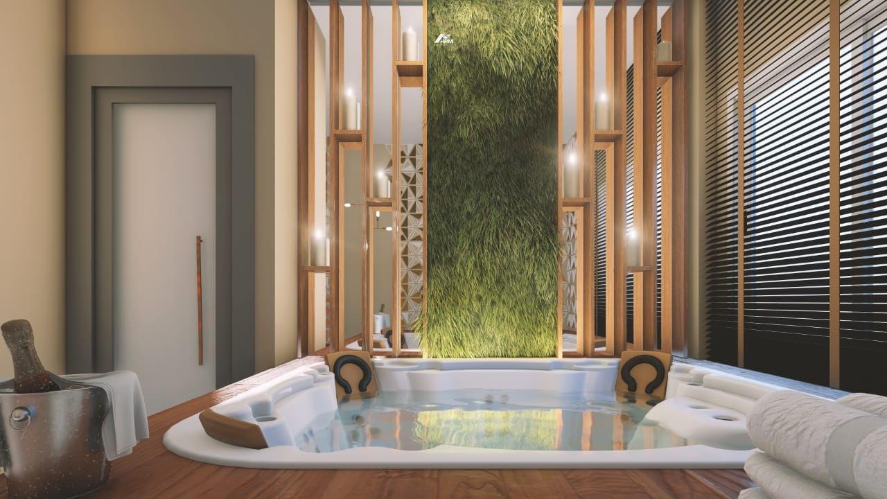 A área de lazer é assinada pela renomada arquiteta Daniela Vieira e foi projetada para todas as idades. Entre os destaques estão: piscina adulto com borda molhada, piscina infantil, spa, sala de massagem, relax lounge externo, mini quadra poliesportiva, playground, brinquedoteca, pub com jogos, salão de festas, espaço gourmet e outdoor grill. O hall de entrada com pé-direito duplo de 5,74 m transmite sofisticação desde a chegada, complementado por 2 elevadores e uma infraestrutura moderna de lazer com pé-direito de 3,60 m na área comum.