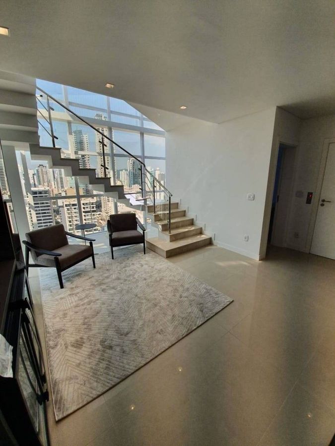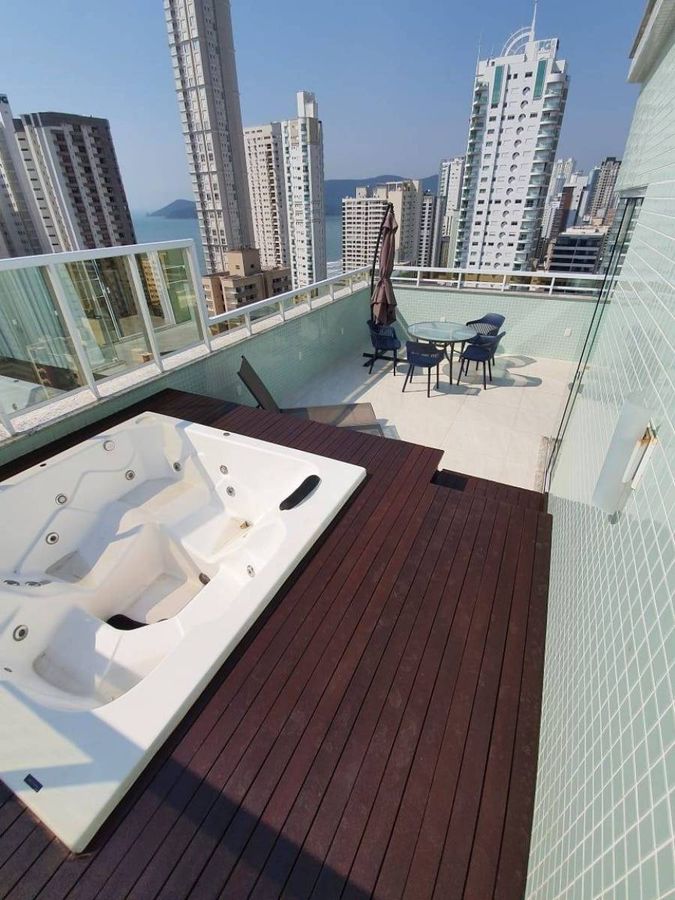 Cobertura duplex totalmente mobiliada, decorada e com vista para o mar e para a cidade, localizada no Centro de Balneário Camboriú. Imóvel possui 04 suítes, sala de estar, sala de jantar, lavabo, cozinha, área de serviço, churrasqueira, amplo terraço com jacuzzi e deck, e 04 vagas de garagem.