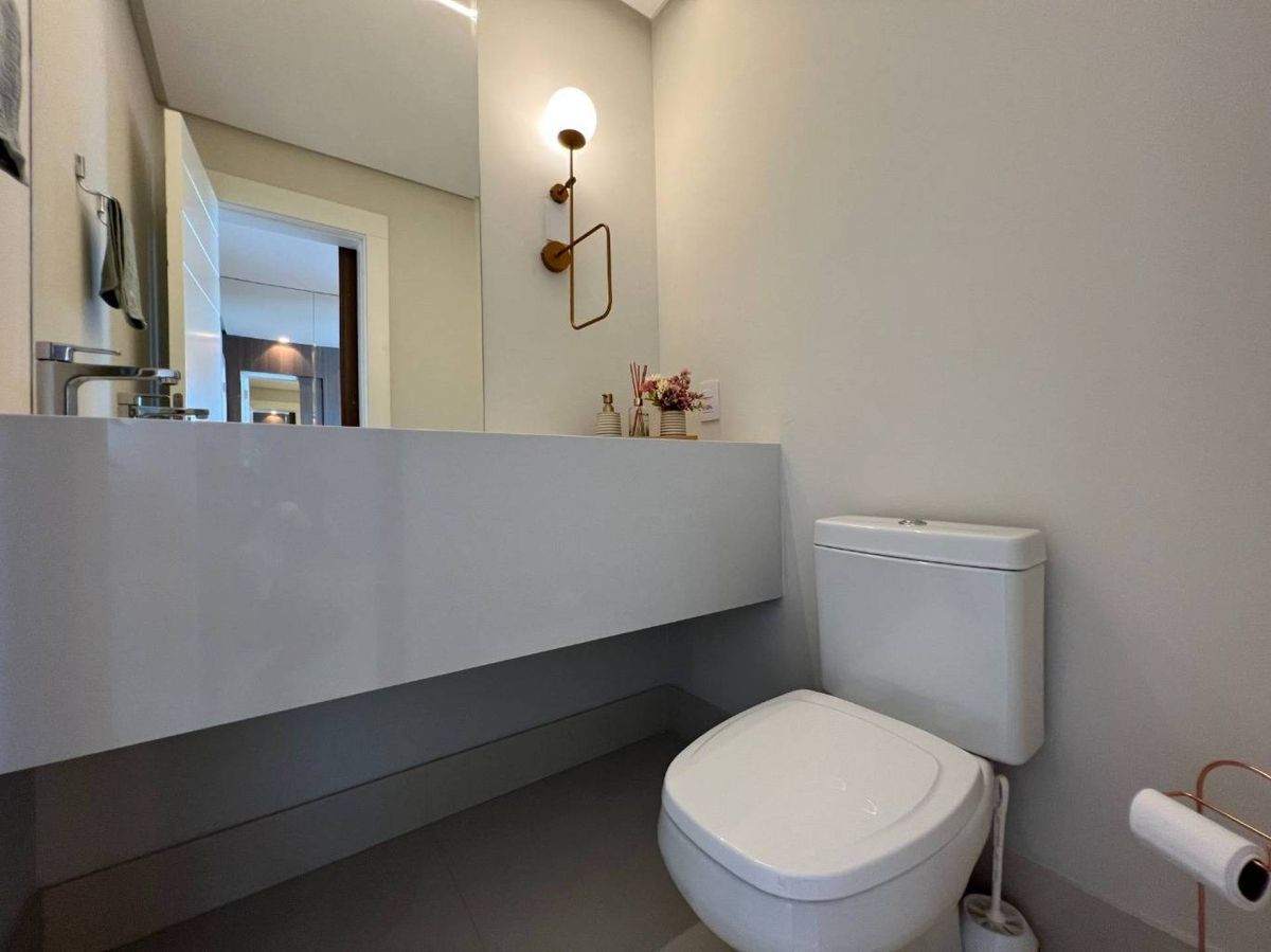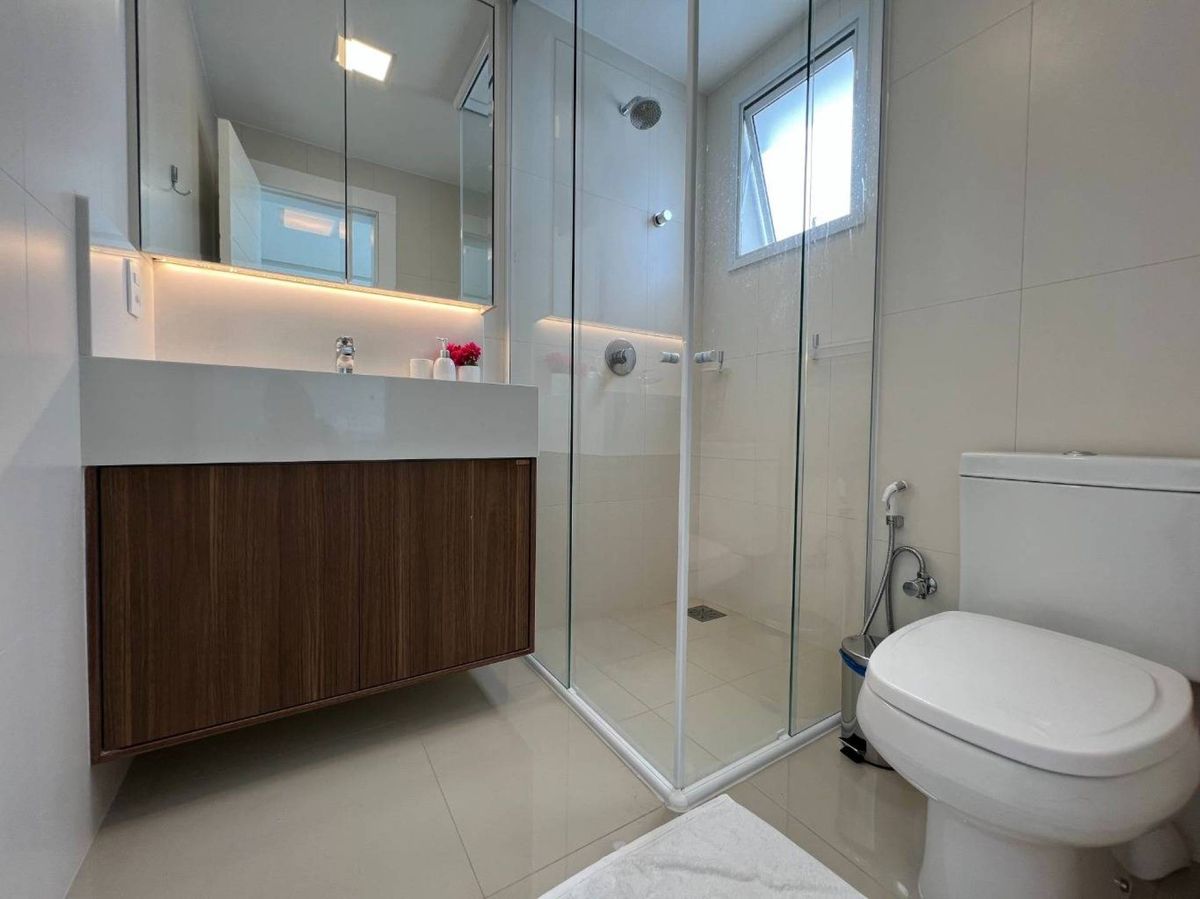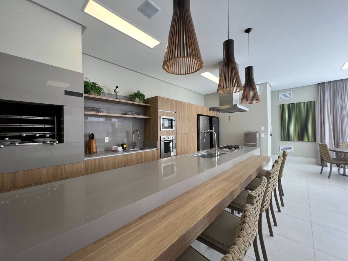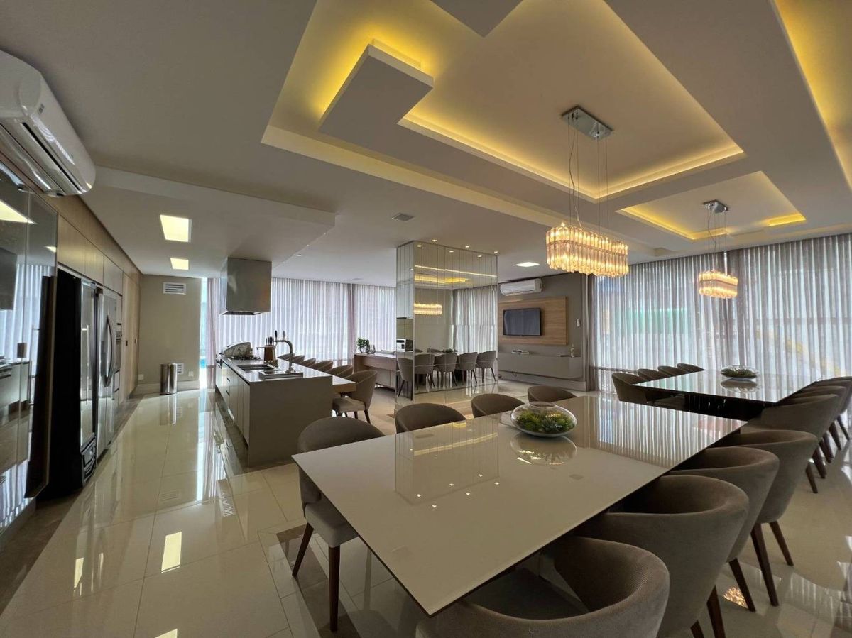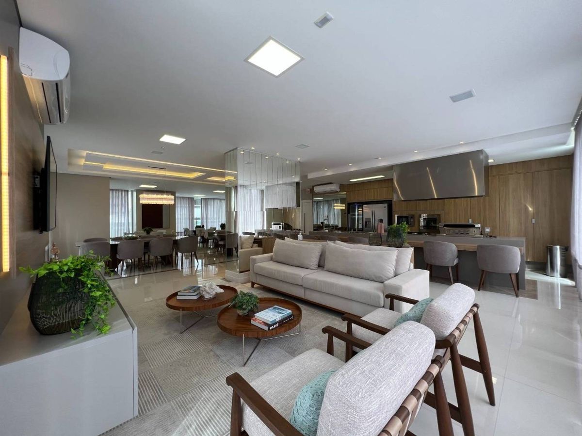 Imóvel com 03 suítes, living integrado com vista para o mar, churrasqueira, área de serviço e 03 vagas de garagem.