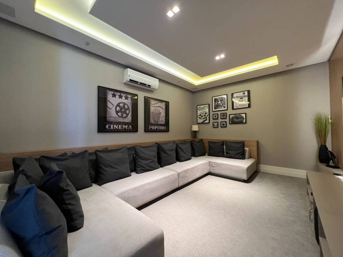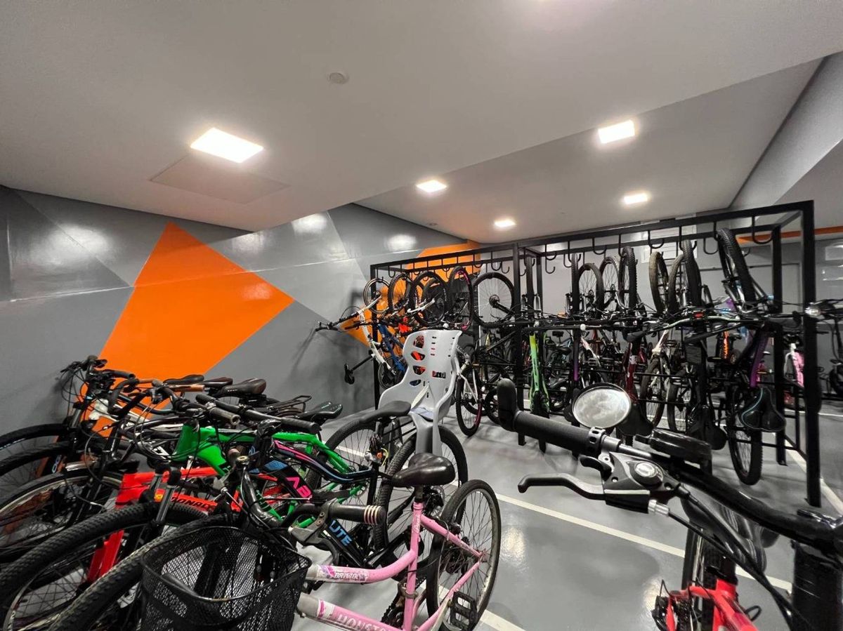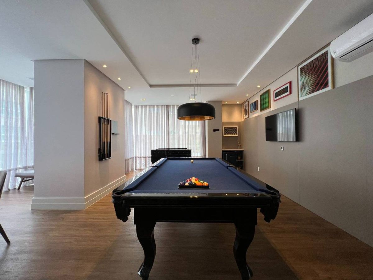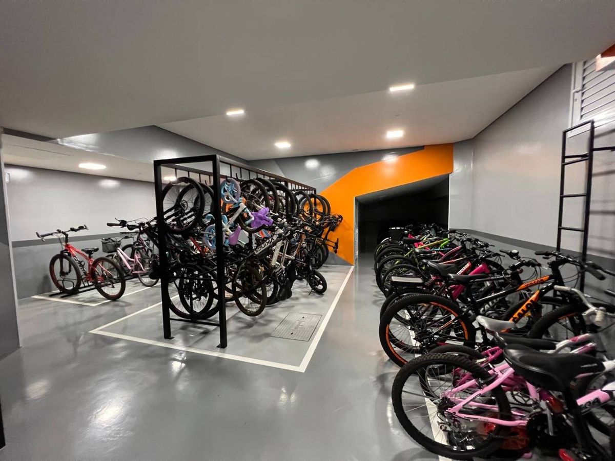 Condomínio com portaria 24h, bicicletário, piscina infantil, piscina adulto, banheira de hidromassagem, espaço gourmet, salão de festas, playground, brinquedoteca, sala de jogos, cinema e quadra de esportes.
