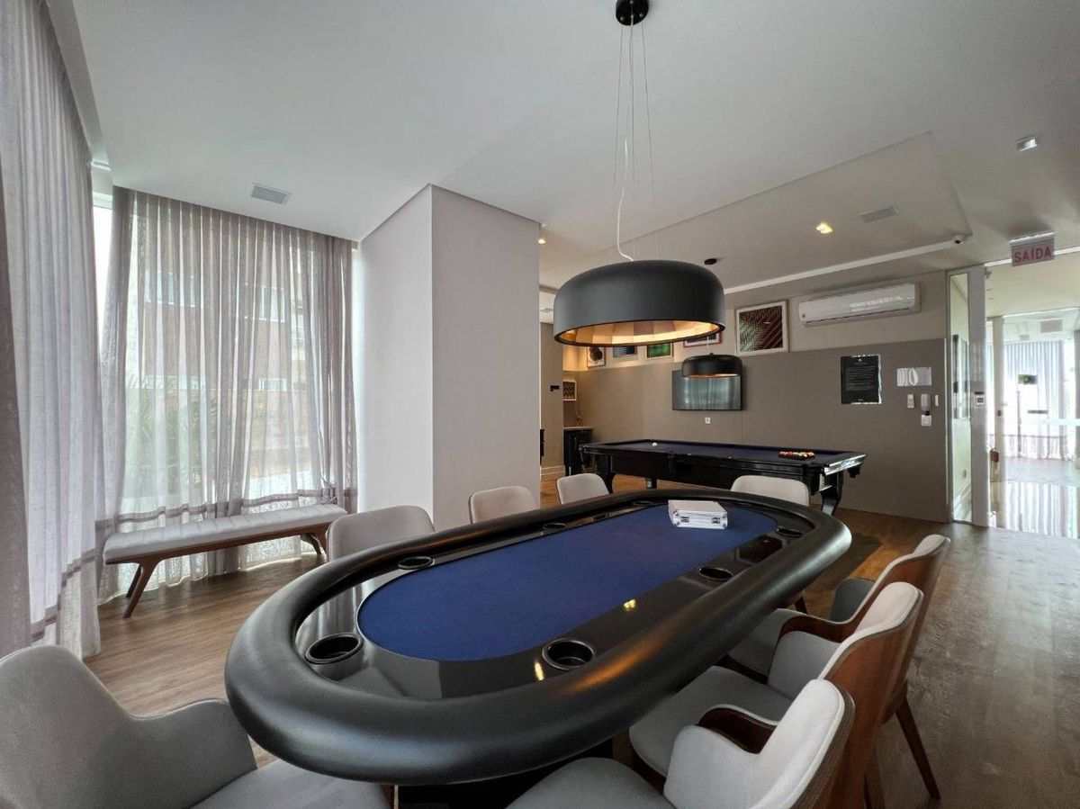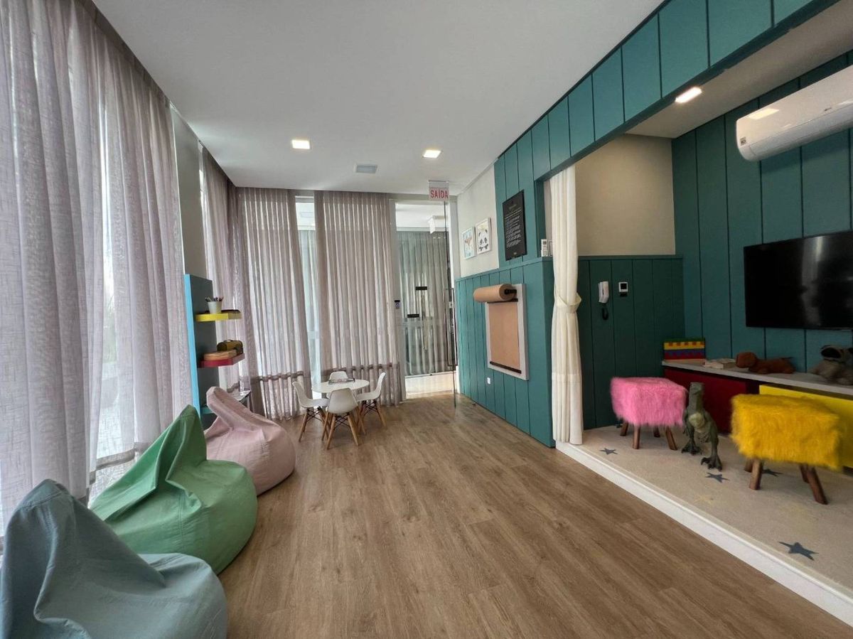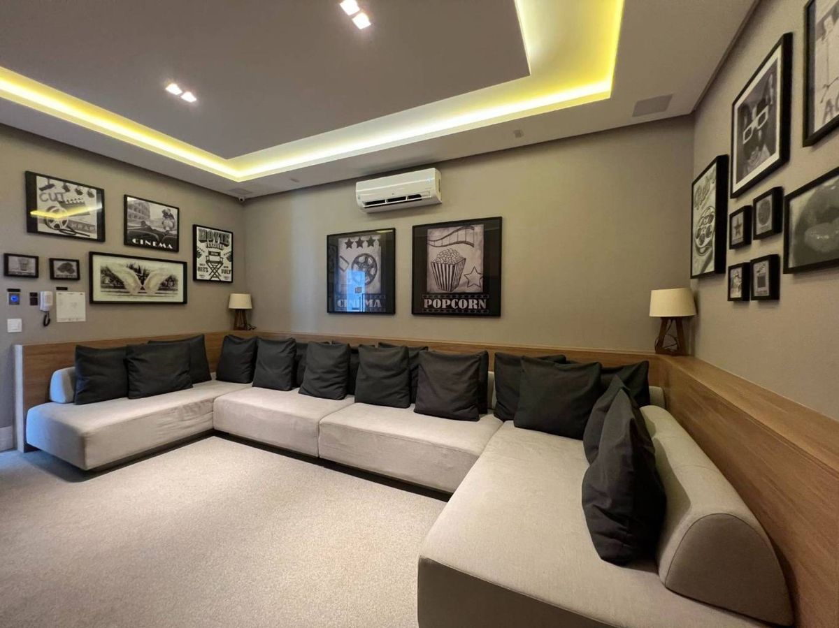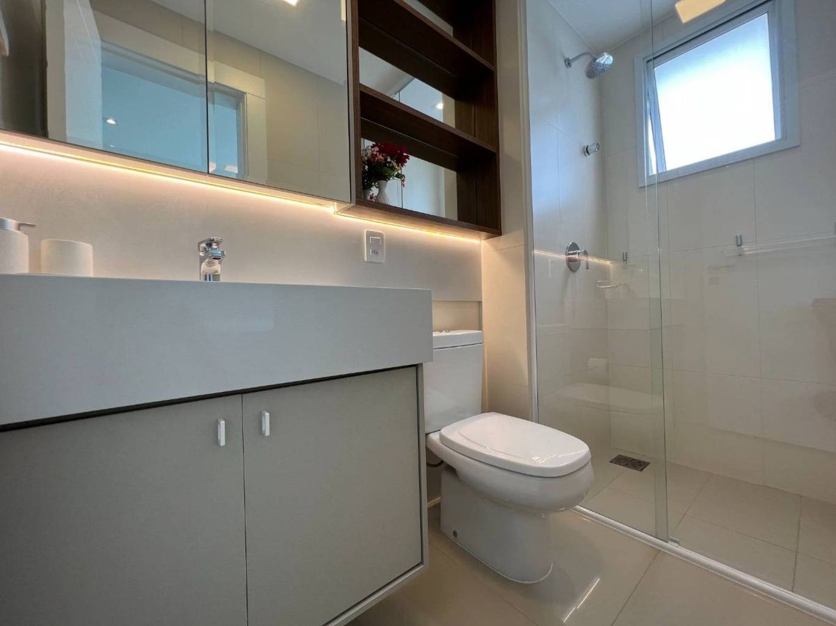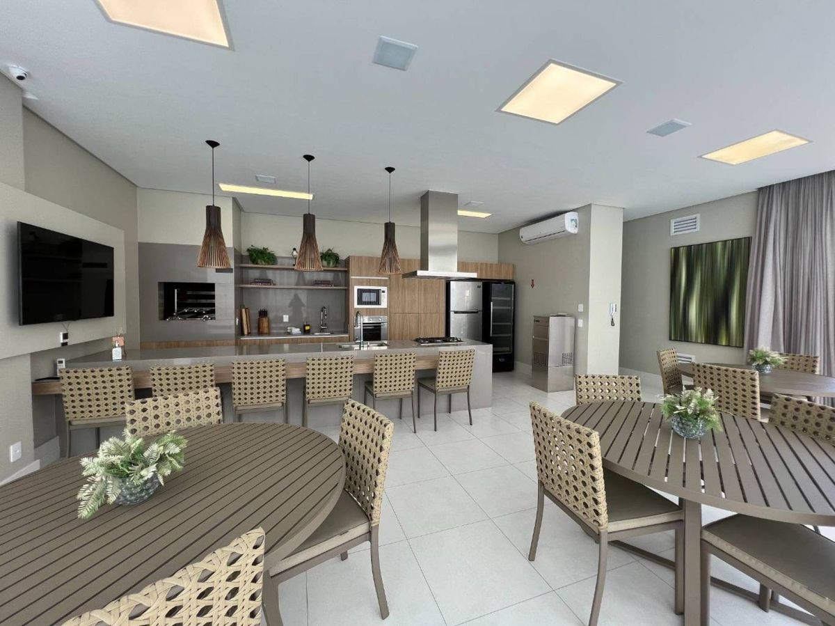 Condomínio com portaria 24h, bicicletário, piscina infantil, piscina adulto, banheira de hidromassagem, espaço gourmet, salão de festas, playground, brinquedoteca, sala de jogos, cinema e quadra de esportes.