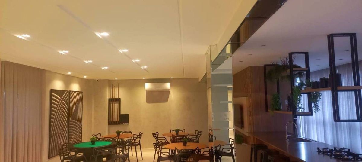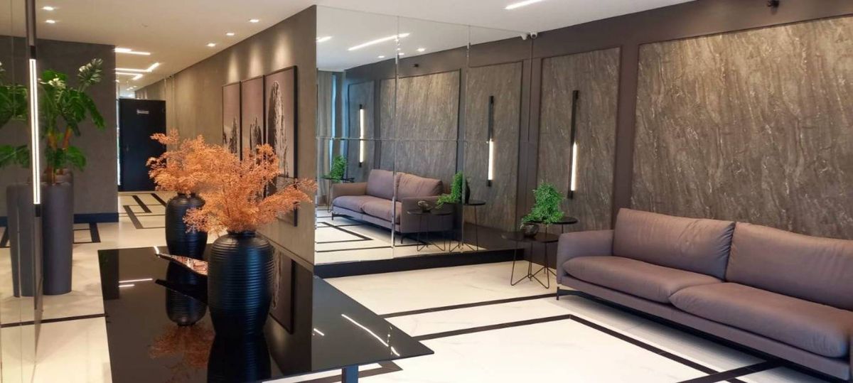 Churrasqueira a carvão e 2 vagas de garagem. Sacada integrada com ótima vista. Orientação solar Norte, posição frente.
