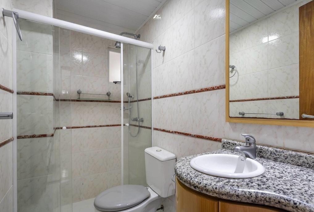 A área íntima oferece três dormitórios, incluindo uma suíte espaçosa para máximo conforto. Além disso, há um banheiro social para uso dos moradores e visitantes, ambos equipados com chuveiro a gás.