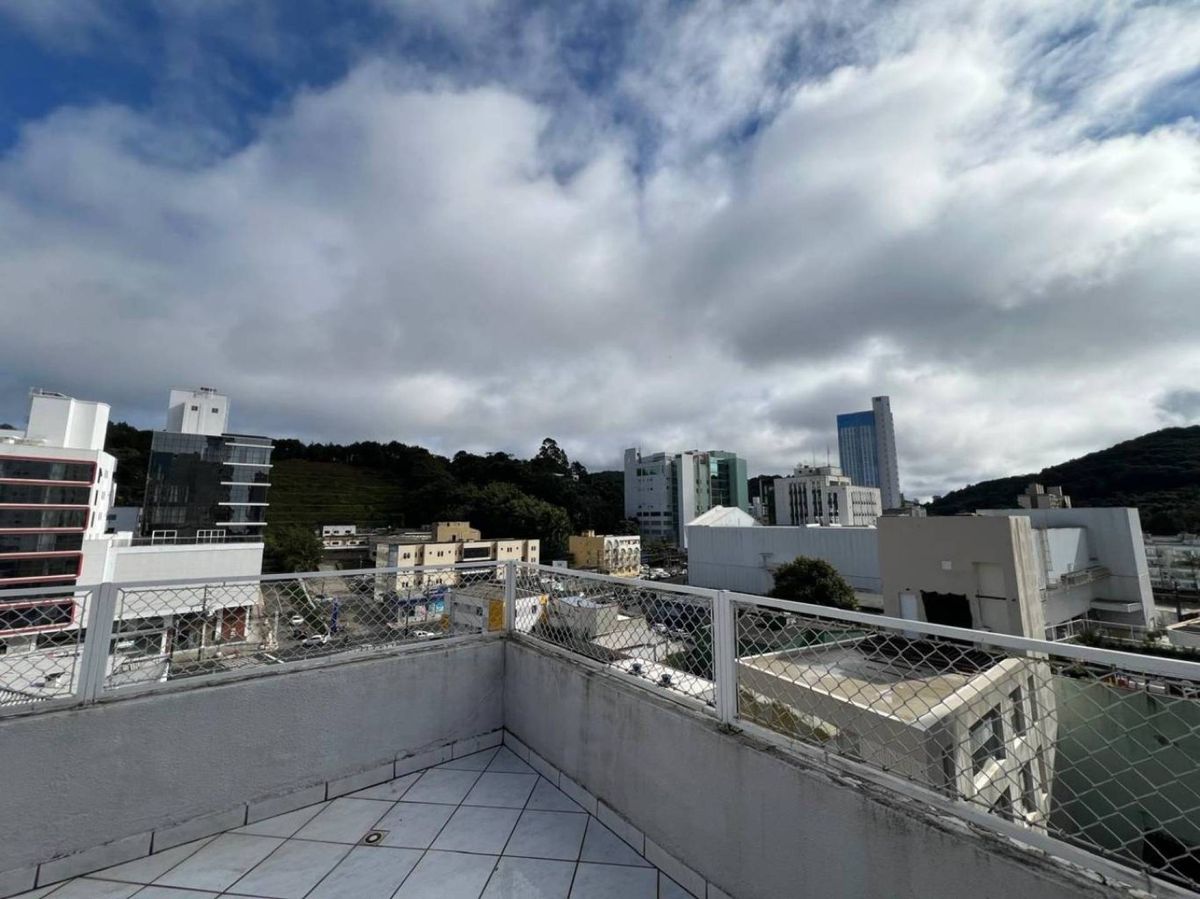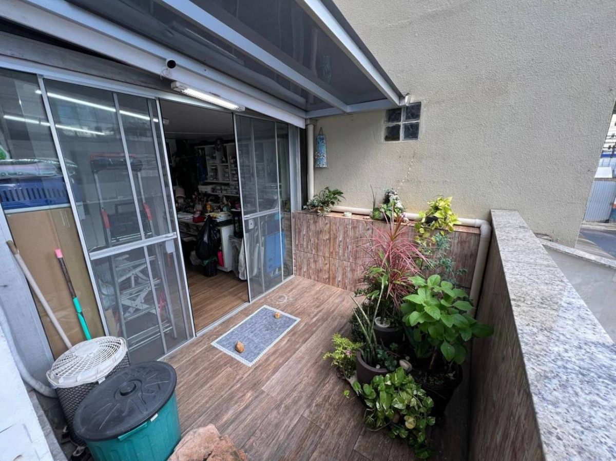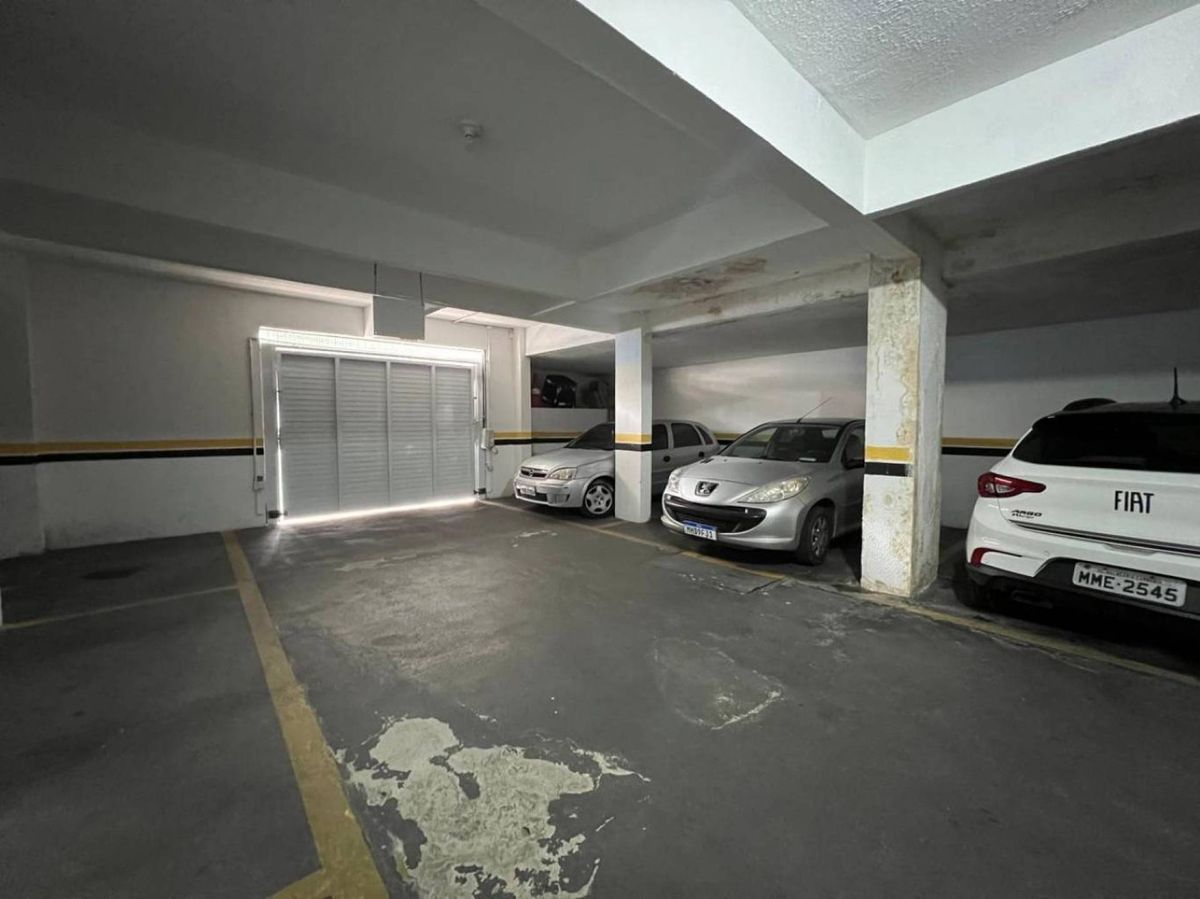 Prédio com elevador e salão de festas com churrasqueira no rooftop.