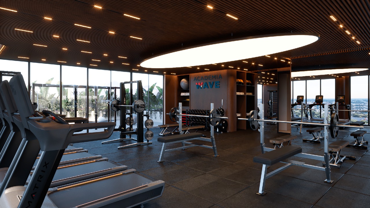 Academia Wave, espaço para crossfit e fireplace
