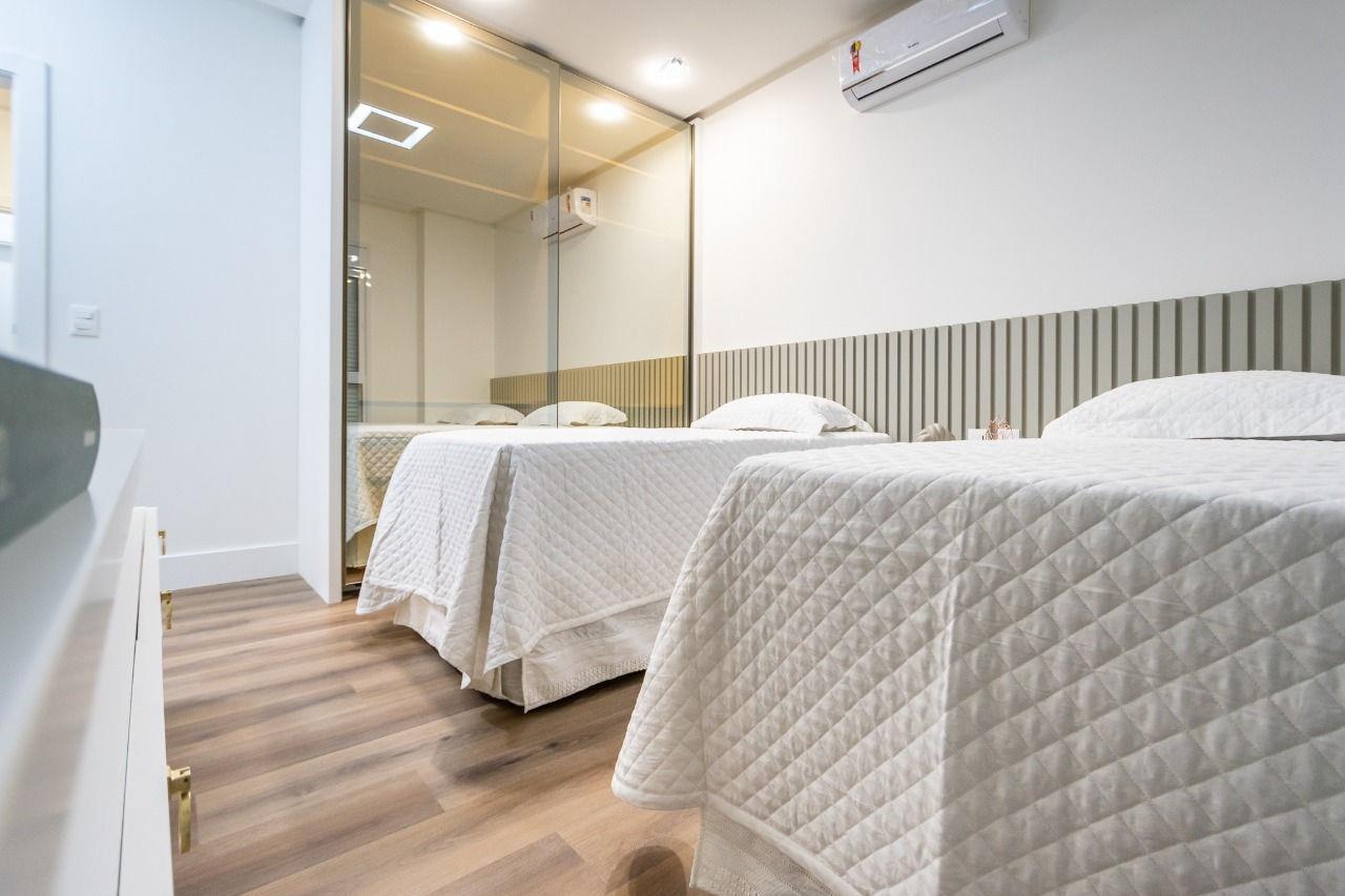 As unidades oferecem acabamento em gesso, aquecimento a gás, área de serviço, banheira de hidromassagem, churrasqueira a carvão, cozinha planejada, lavabo, amplo living integrado, sala de estar e sala de jantar. São quatro suítes, área privativa de 170,60 m², três vagas de garagem e infraestrutura completa para ar split e água quente. Os apartamentos contam ainda com porcelanato, fechadura eletrônica com senha, interfone, hidrômetro individual e medidores de água, luz e gás independentes.