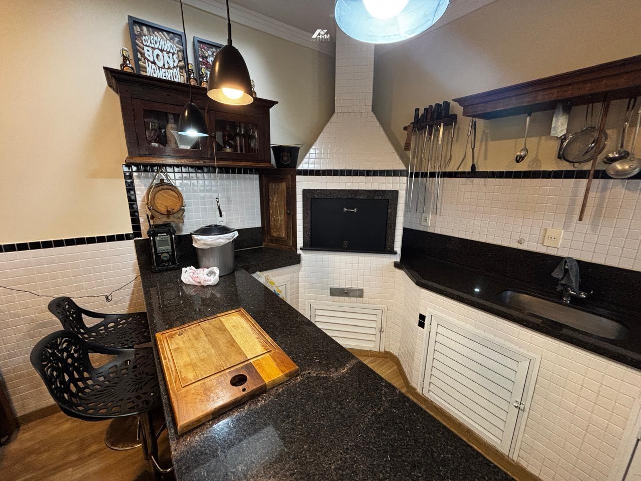 área gourmet com churrasqueira e fogão a lenha