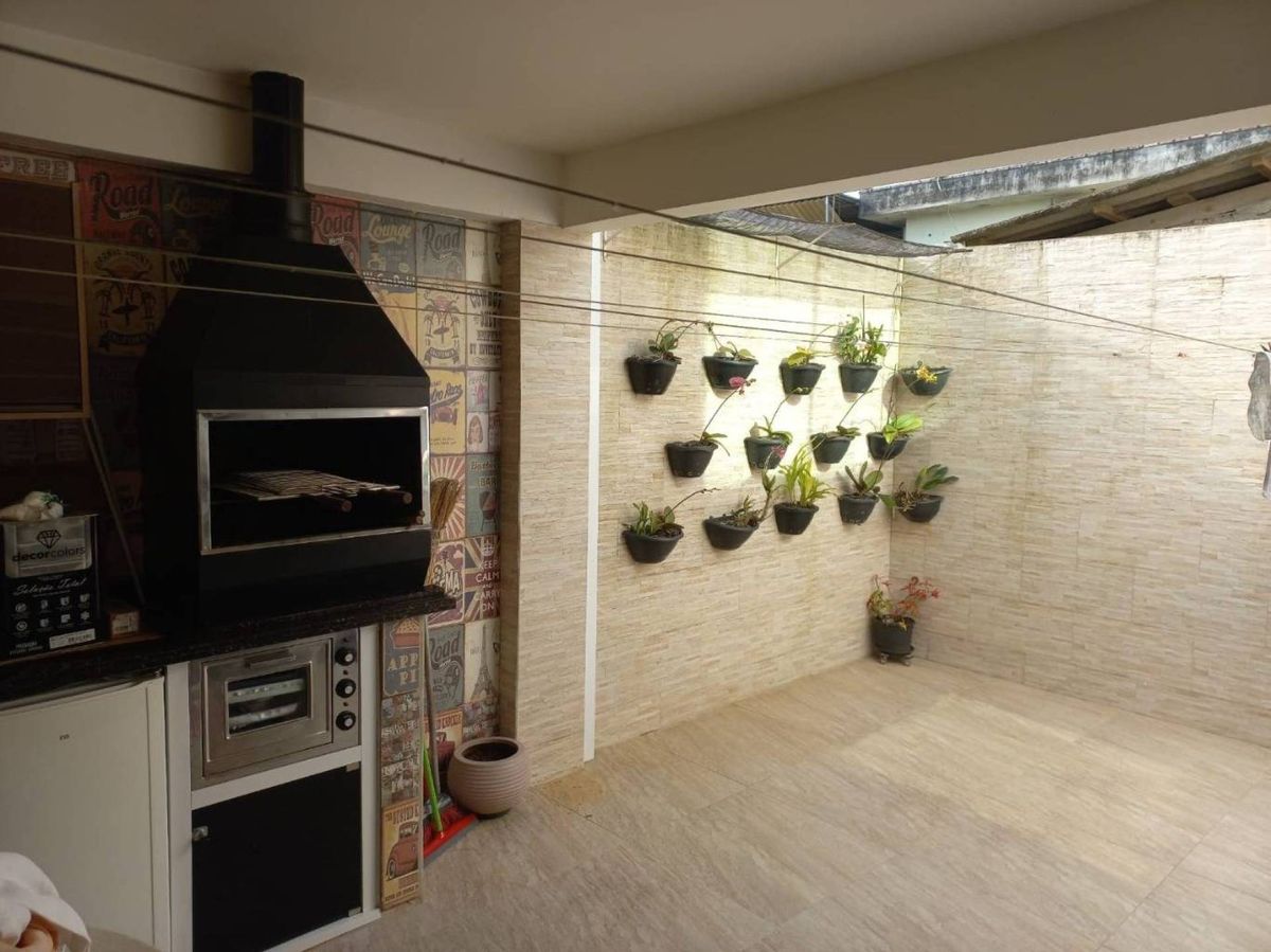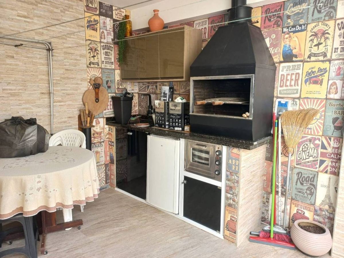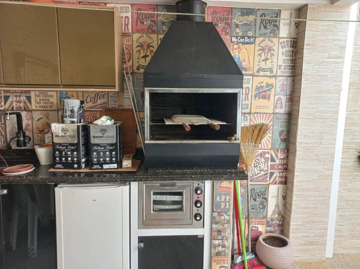 área gourmet com churrasqueira a carvão.
