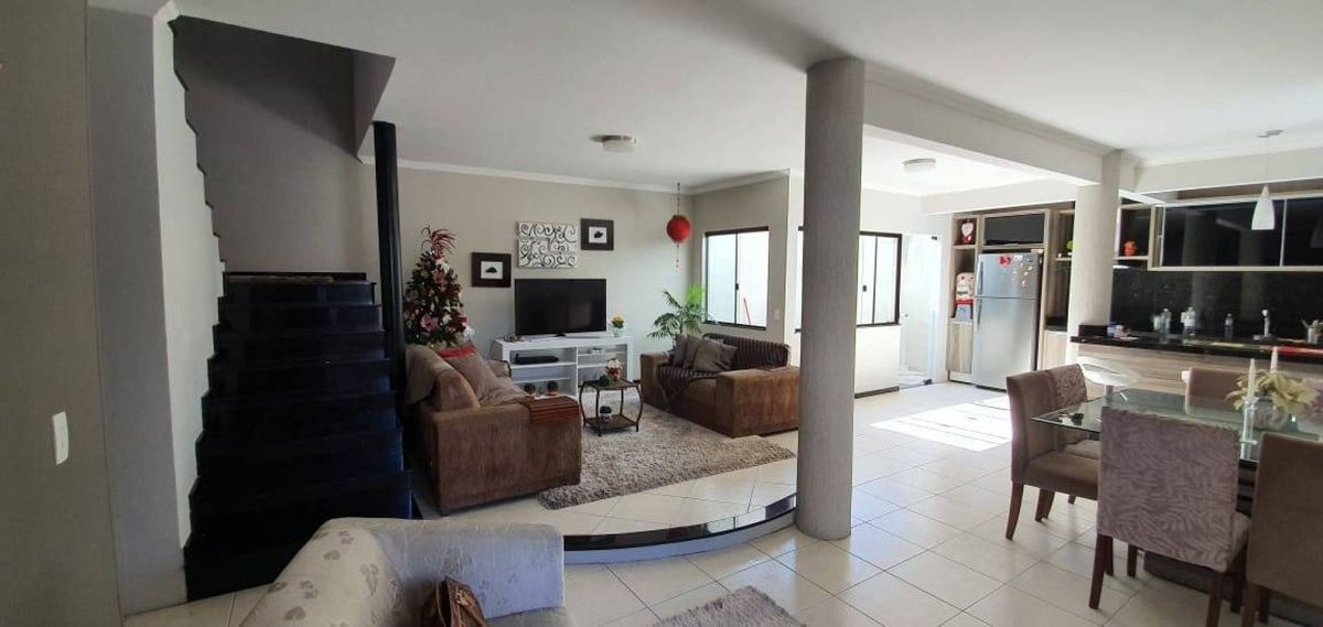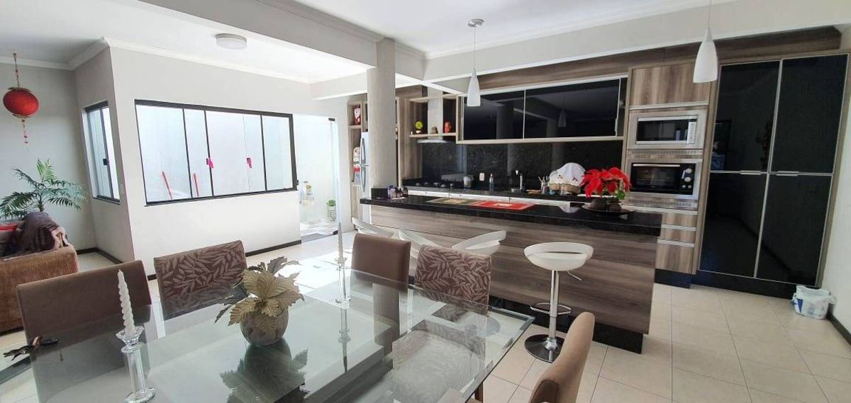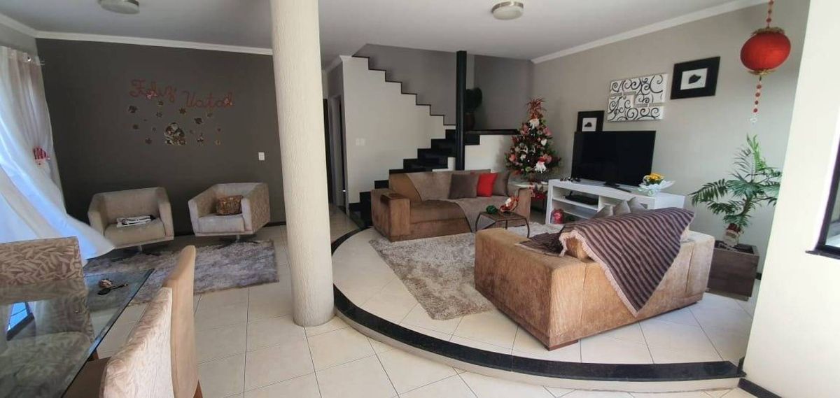 casa com 4 quartos sendo 01 suíte, 3 banheiros, cozinha planejada, dois ambientes de sala, uma de TV, outra sala de jantar, sala na frente térrea para ser escritório, Terraço e lavandeira com ventilação ótima, garagem coberta para um carro e mais um carro no pátio.