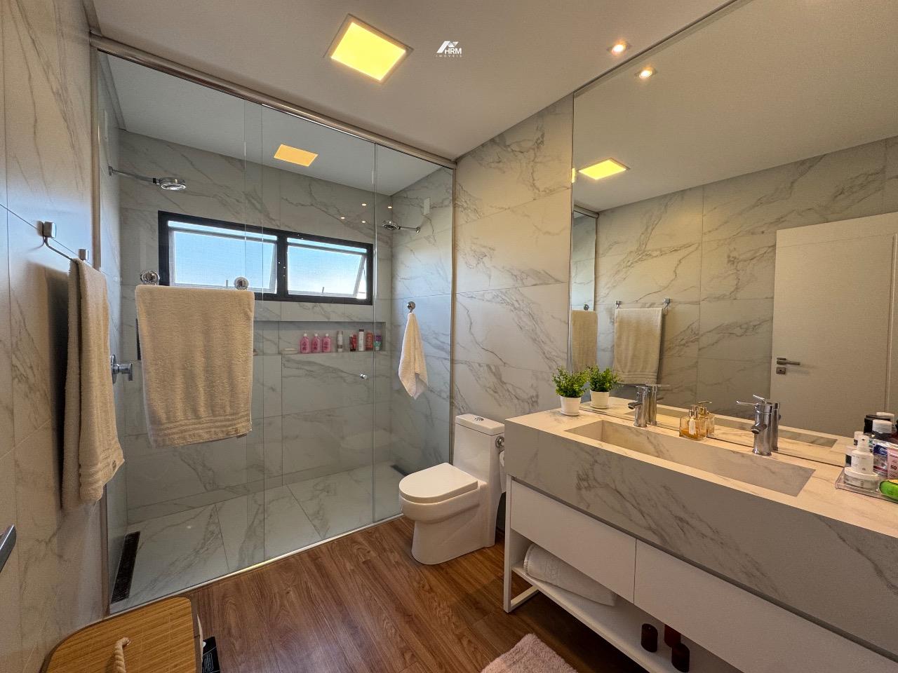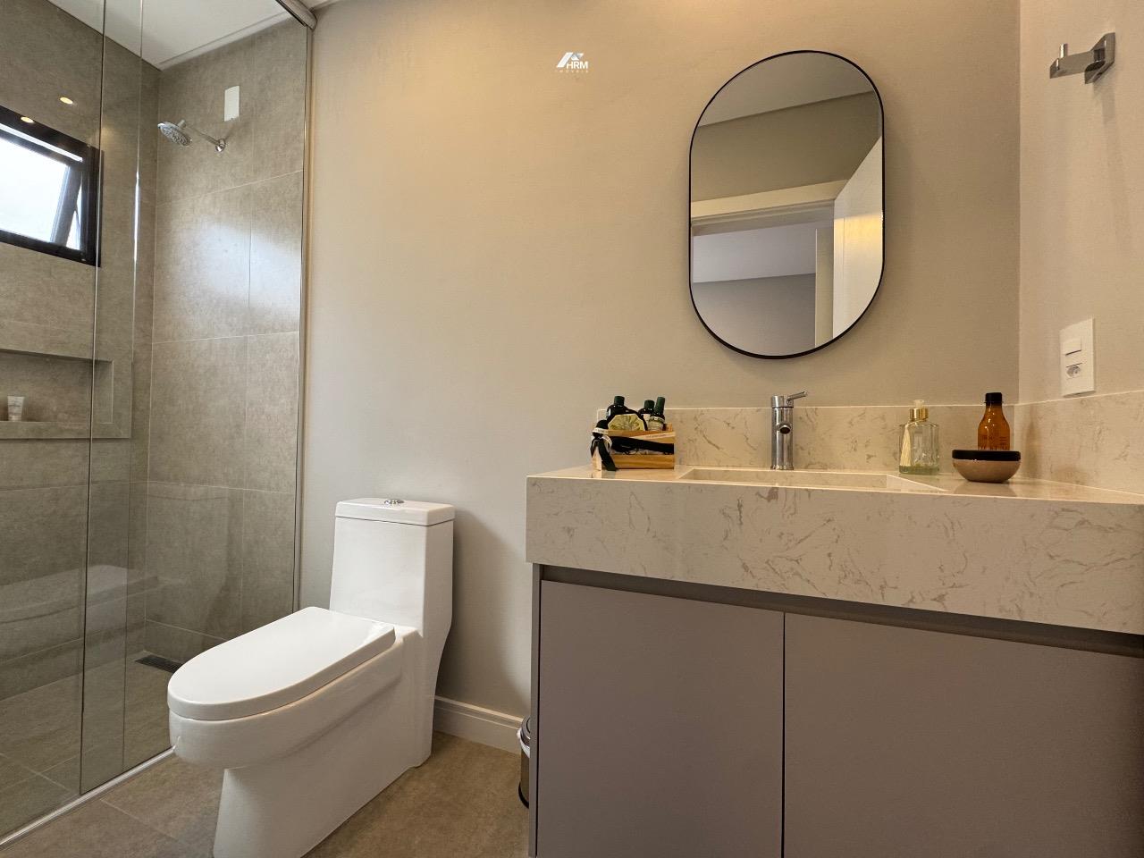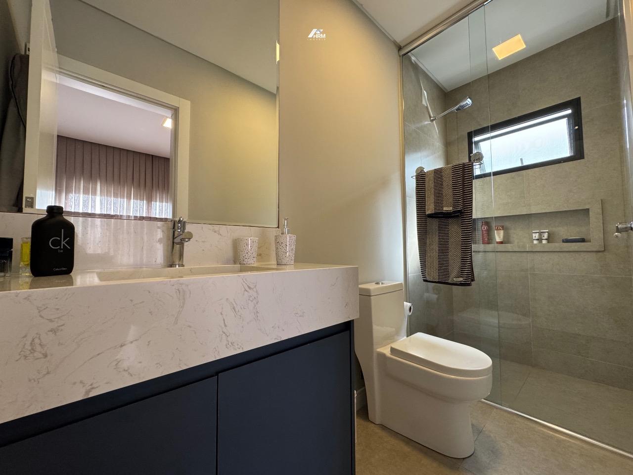 A casa conta com comodidades que transformam o dia a dia, como sistema de pressurização em toda a casa com aquecimento solar, garantindo água quente e economia. Além disso, todas as aberturas possuem telas de proteção e as suítes contam com persianas automatizadas, oferecendo praticidade e segurança.