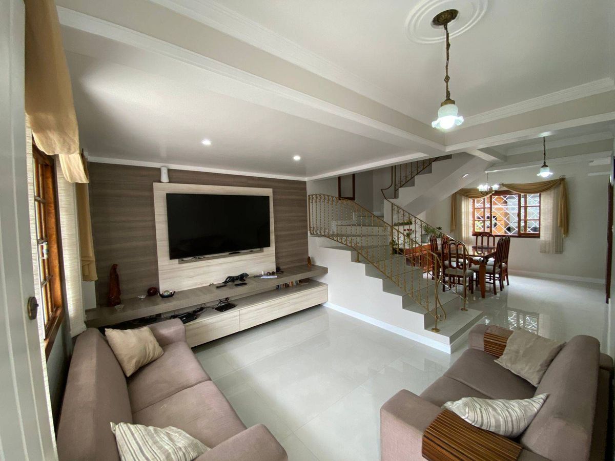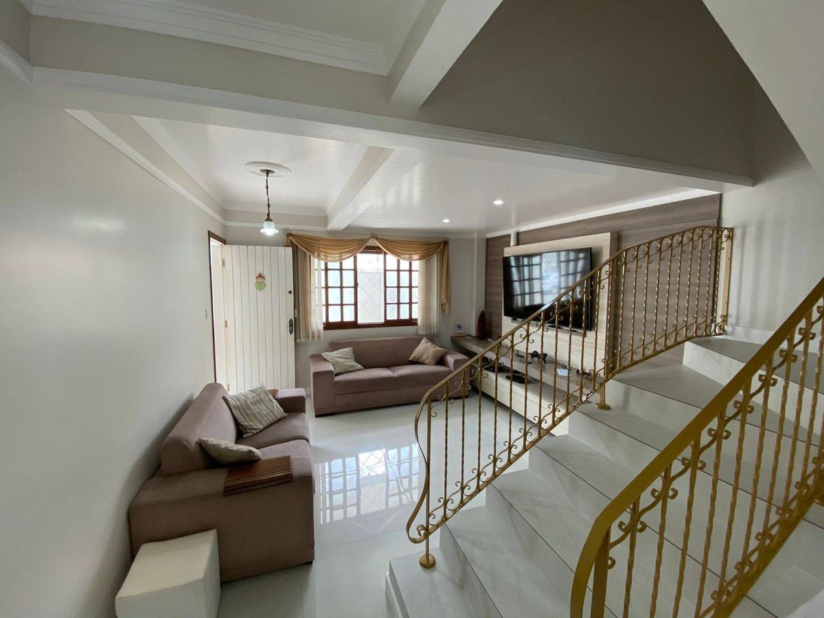 Casa sobrado com 3 dormitórios sendo um suíte com sacada possibilidade de fazer um sótão, sala de jantar e estar com uma linda escada ao centro cozinha sob medida , pátio nos fundos com área gourmet e churrasqueira a carvão garagem pra dois carros pátio na frente com jardim portão eletrônico.Características do imóvel