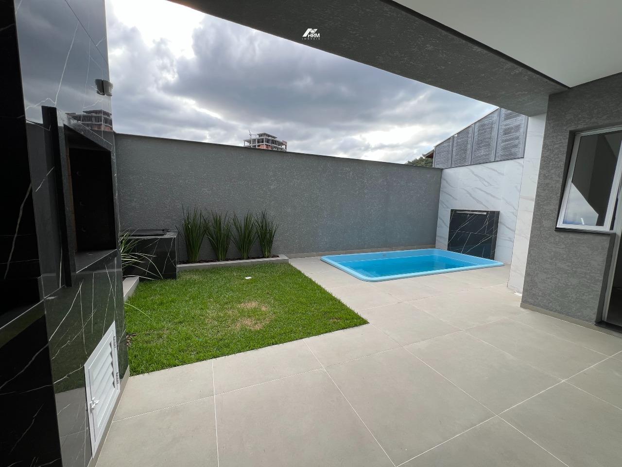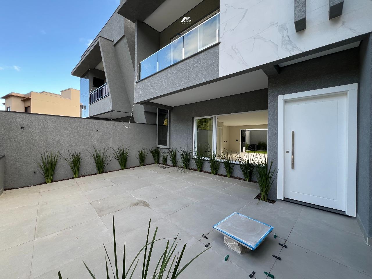 Sobrado novo em Camboriú, bairro São Francisco, Terras Altas, com 178m² privativos, alto padrão de acabamento, composto por 3 suítes amplas, sendo uma máster com closet, amplo living, lavabo, área de serviço independente, espaço gourmet com churrasqueira a carvão e piscina com cascata nos fundos.