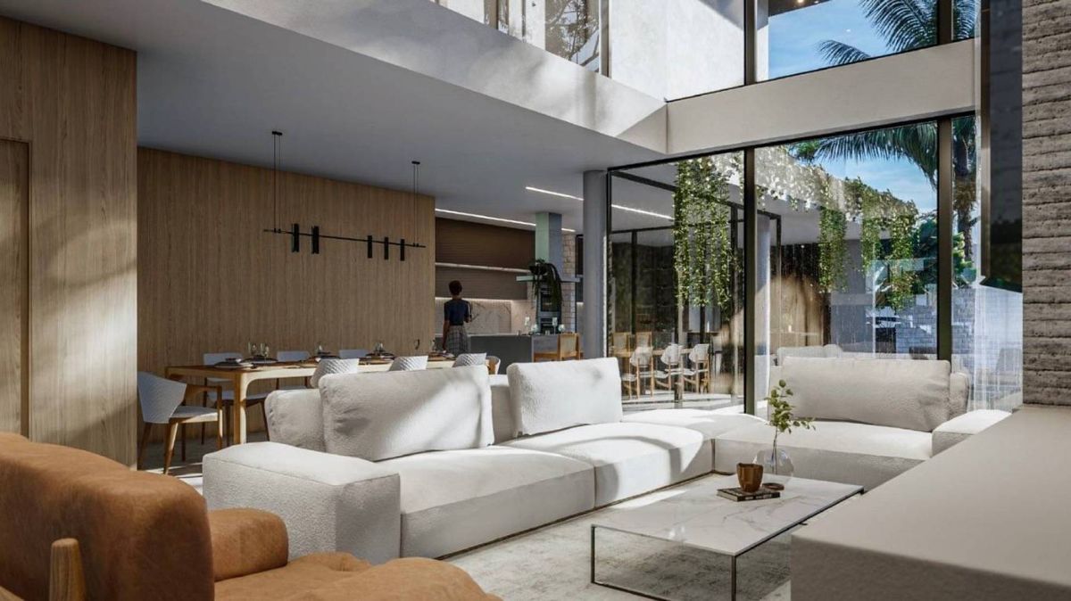 Imóvel possui 03 suítes no piso superior, sendo 1 master com closet, 01 suíte no térreo, sala íntima piso superior, sala estar com pé direito duplo com ponto de lareira a gás, sala de jantar, cozinha, lavanderia e despensa, espaço gourmet com churrasqueira a carvão, infra para aquecimento solar e energia solar, piscina com prainha, tratamento a sal, garagem para 06 carros com tomada para carro elétrico sendo 03 cobertas e 03 descobertas, esquadrias com veneziana motorizada e tela mosquiteiro em todos ambientes, casa suspensa do solo com duto de ventilação ( para evitar qualquer tipo de umidade).