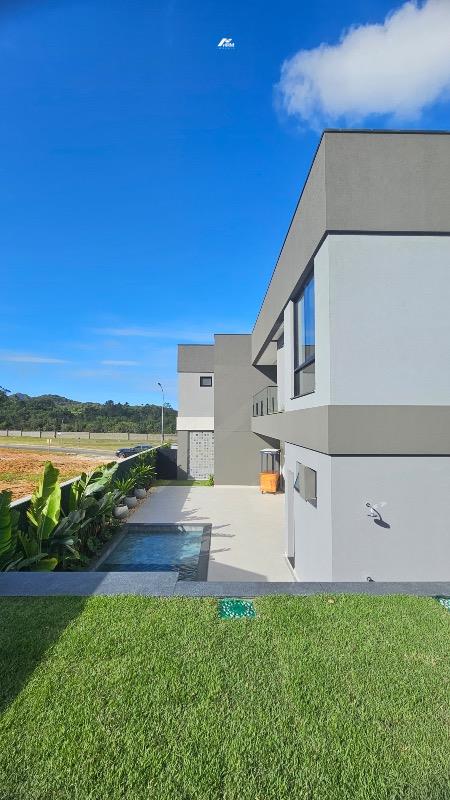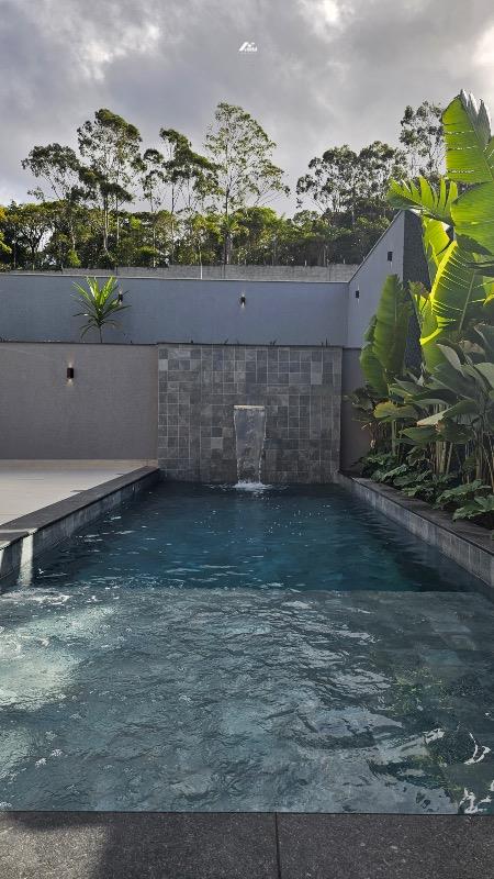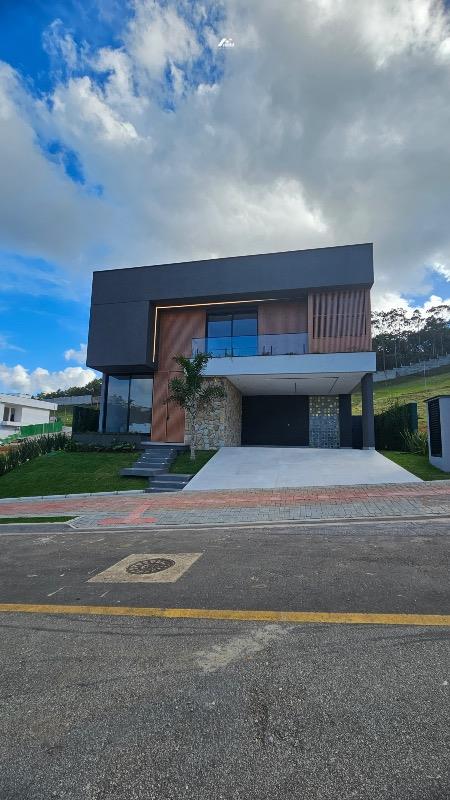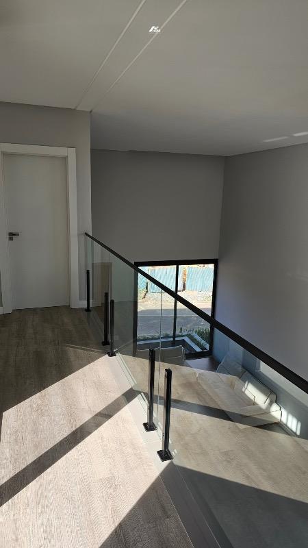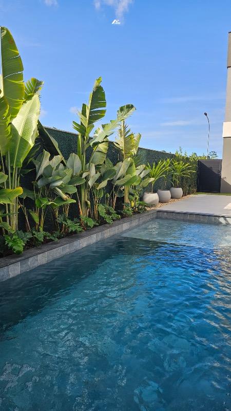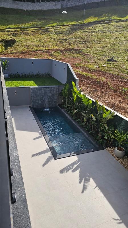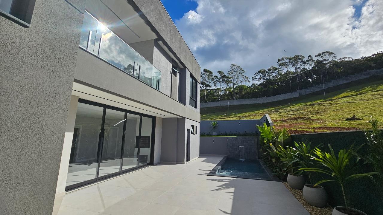 São 04 suítes, incluindo uma suíte no andar térreo que garante praticidade e conforto para toda a família. O projeto destaca um imponente pé-direito duplo, valorizando a amplitude dos ambientes e reforçando a sensação de sofisticação.