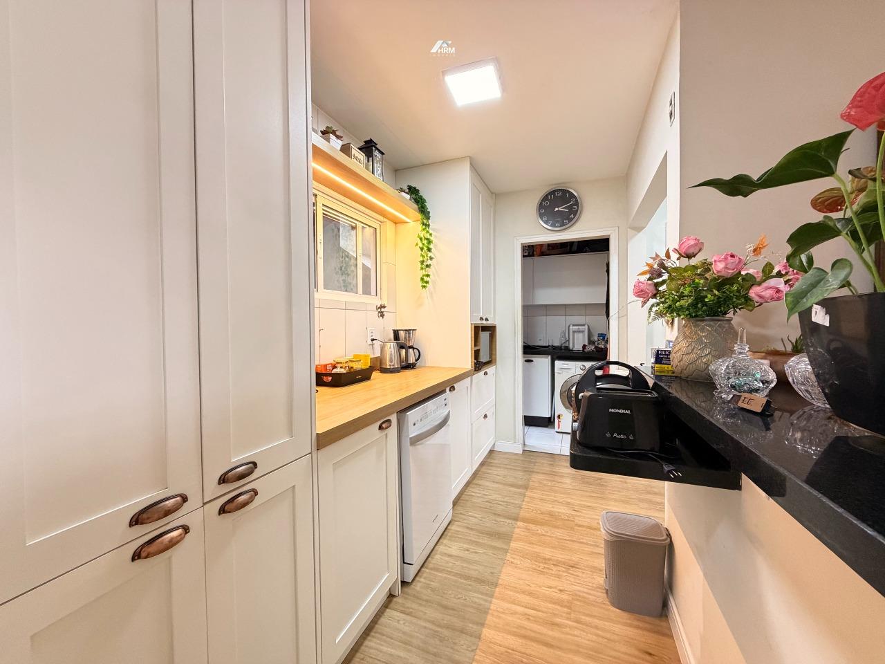 Área interna de 112 m², mobiliado, com ar-condicionado, armários, despensa, cabeamento estruturado, TV a cabo, internet, água individual, interfone, portão eletrônico, jardim.
