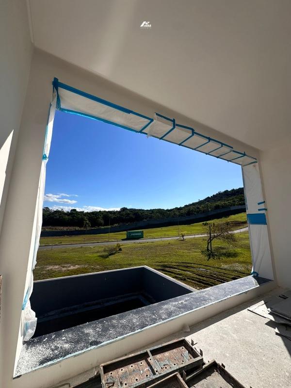 Casa no Condomínio Parque do Lago em Camboriú, 272m2 de área de construída, 457m2 de terreno, 2 pavimentos sendo o pavimento térreo com sala de estar, sala de jantar, cozinha americana, escritório, lavabo, área de serviço, Área gourmet com churrasqueira à carvão, piscina com prainha e spa, jardim, 3 vagas de garagem e no pavimento superior com 3 suítes sendo 1 master com closet.