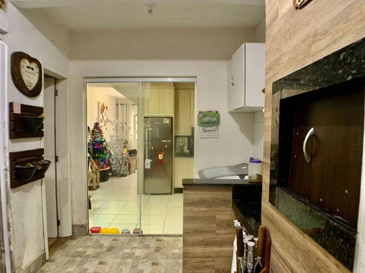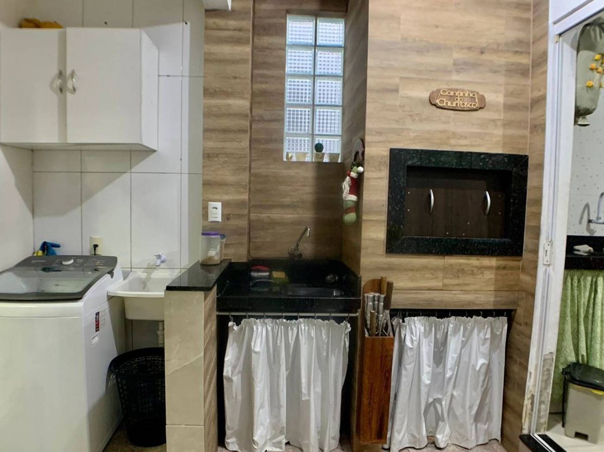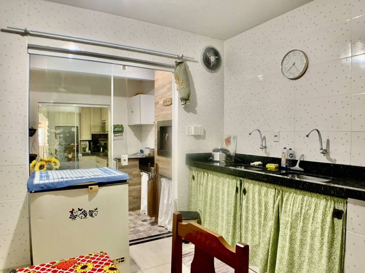Casa de 3 quartos em Camboriú com espaço para 2 carros na garagem, conta com sala se tv, cozinha, área gourmet, lavabo, lavanderia e um espaço para uma cozinha industrial aos fundos.