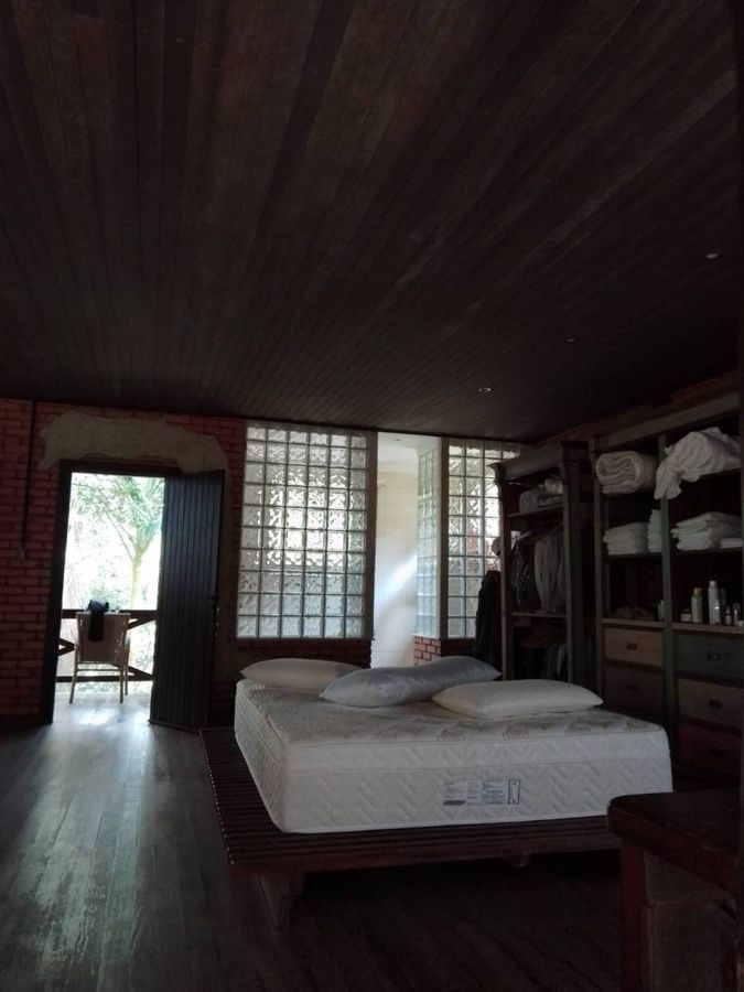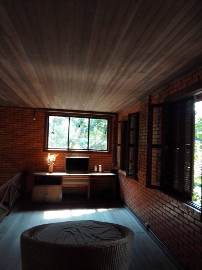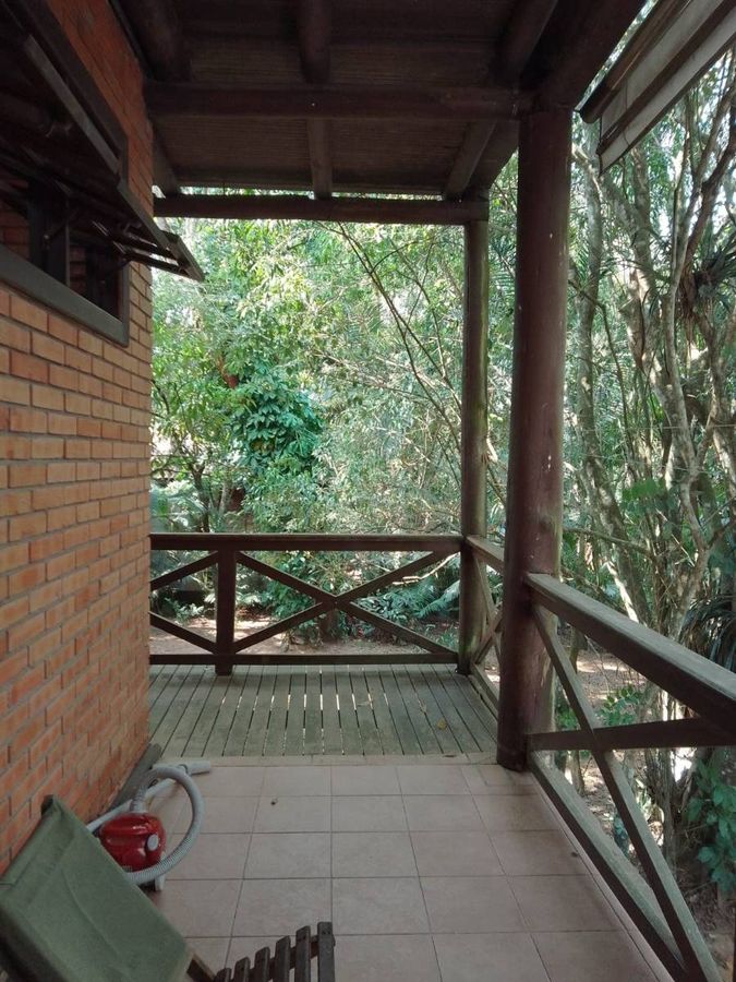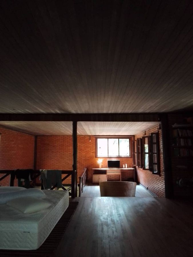 Possui uma ampla suíte, sacadas nos dois andares, cozinha integrada, sala com lareira, ampla garagem, área de serviço e banheiro.