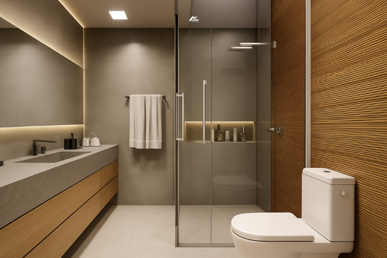 O projeto prioriza conforto e praticidade, incluindo pontos para desembaçador de espelhos, toalheiro térmico, duchas higiênicas, além de infraestrutura completa para ar-condicionado e internet em todos os cômodos. Portas e rodapés possuem isolamento acústico e os nichos dos boxes são iluminados por LED. Há ainda a opção de persianas integradas automatizadas nas suítes. Com acabamentos premium, soluções sustentáveis e tecnologias modernas, a Casa Pérgola combina exclusividade, elegância e funcionalidade.