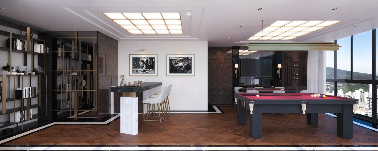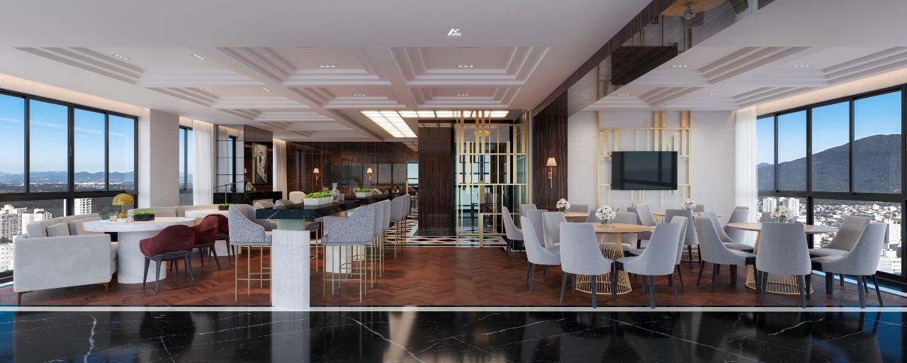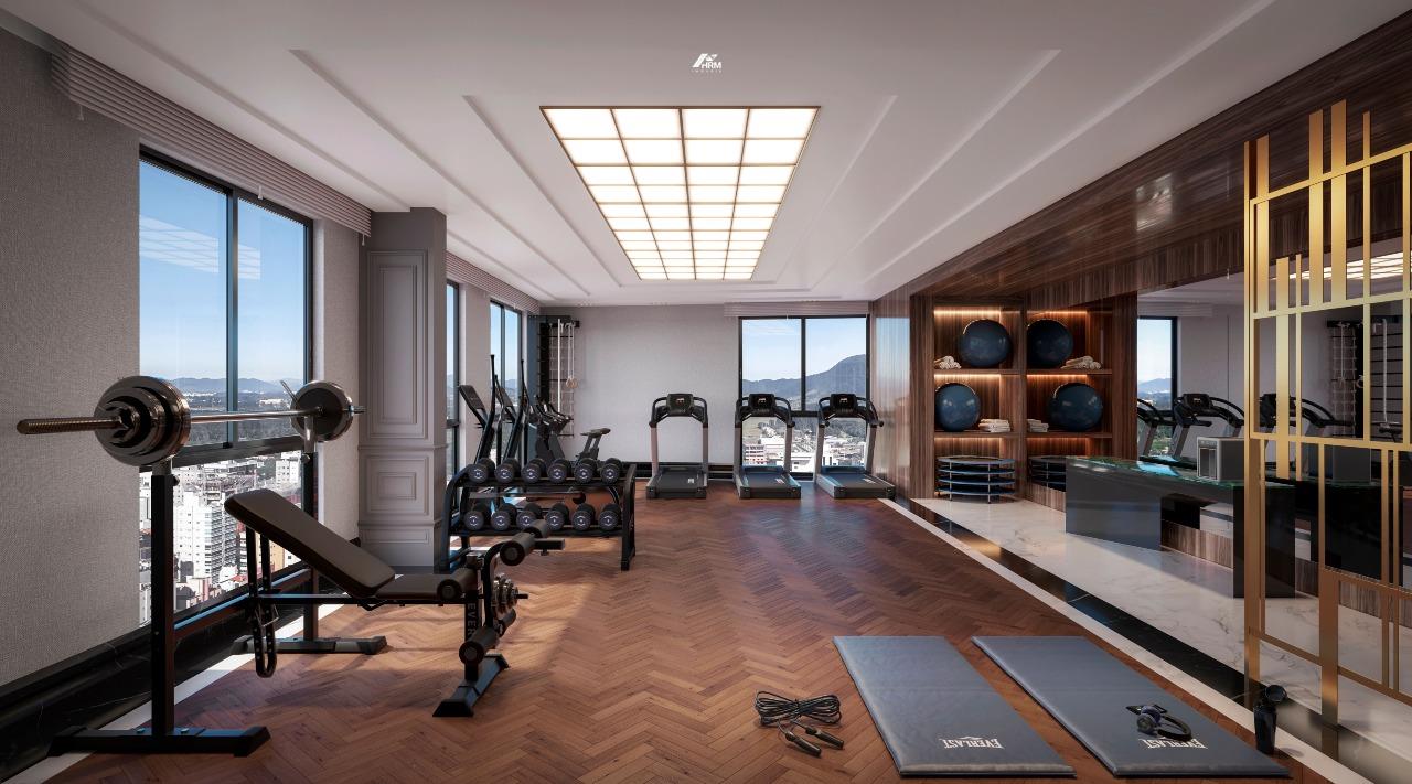 Nos apartamentos, os diferenciais ficam evidentes em espaços como living amplo, lavabo, cozinha americana e varanda gourmet integrada. Itens como churrasqueira, banheira de hidromassagem, closet, persianas elétricas, rodapé de 20 cm e fechadura digital destacam o cuidado com conforto, tecnologia e segurança. A vista panorâmica, o acabamento refinado em gesso e a infraestrutura completa para água quente elevam a experiência de morar.