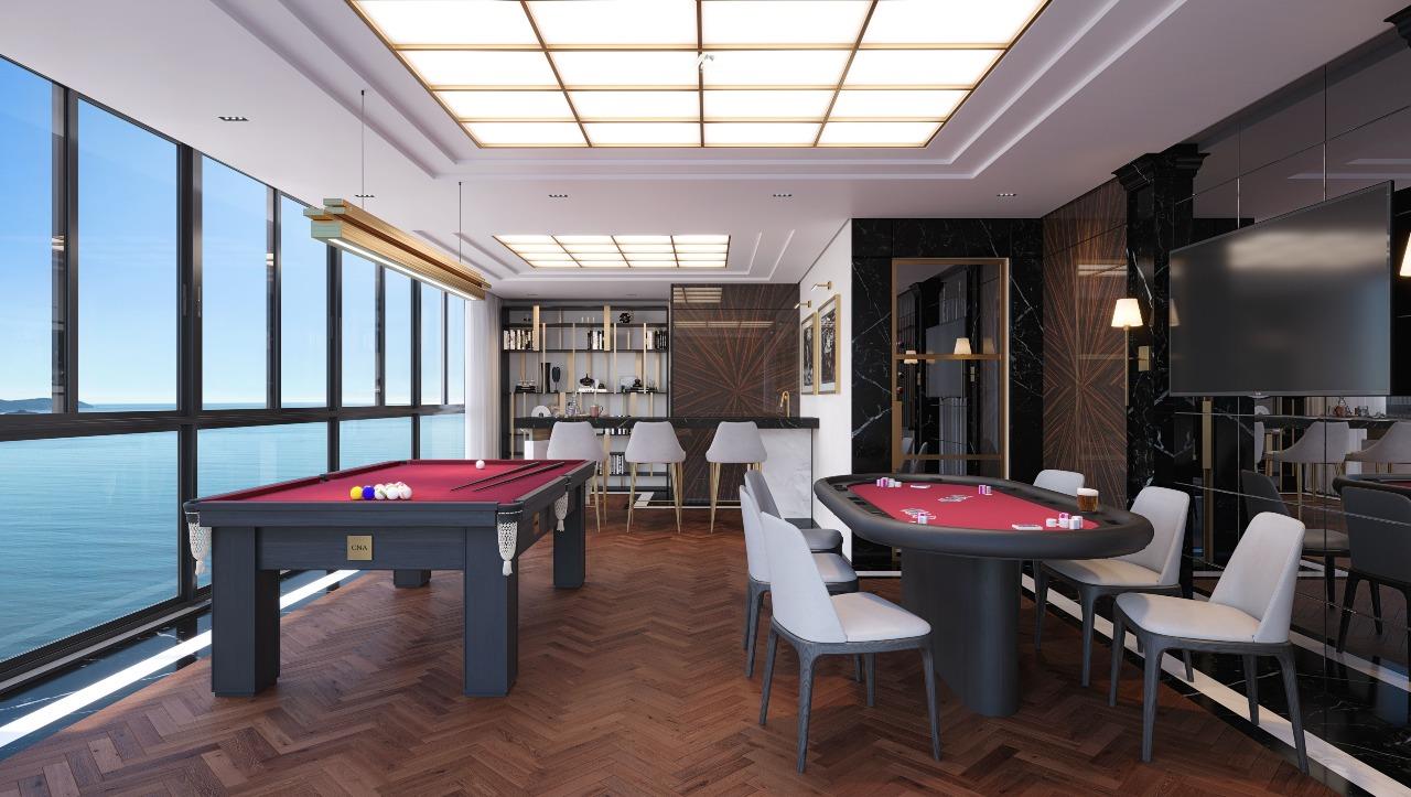 As áreas de lazer e conveniência são verdadeiros destaques: piscina térmica com hidromassagem e jacuzzi, academia equipada, sala de jogos, brinquedoteca, playground e salão de festas. Há também espaço gourmet, hall decorado e mobiliado, sala de reuniões, bicicletário e entrada exclusiva para banhistas com box de praia. A infraestrutura inclui elevador para automóveis, guarita de segurança, circuito interno de TV, alarme e medidores individuais de água, luz e gás, garantindo praticidade e tranquilidade.