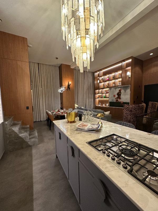 Imóvel de alto padrão, projetado para oferecer conforto, segurança e qualidade de vida. Conta com living integrado, lavabo, cozinha americana, despensa, área de serviço e sala de jantar, além de mezanino, sacada e varanda gourmet com vista panorâmica. Possui infraestrutura completa, incluindo aquecimento a gás, água quente, espera para split, ar-condicionado, fechadura com senha na porta de entrada, medidores individuais de água, luz e gás, hidrômetro individual, internet e sistema de alarme. O acabamento em gesso e os armários embutidos garantem elegância e praticidade em todos os ambientes.
