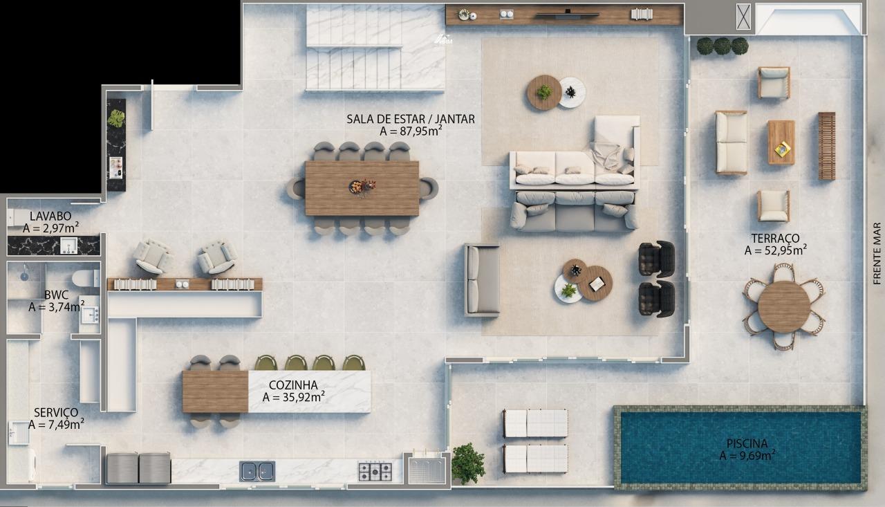 Esta cobertura duplex é a escolha ideal para quem deseja qualidade de vida, luxo e entretenimento, unindo exclusividade, privacidade e um estilo de vida sofisticado à beira-mar.