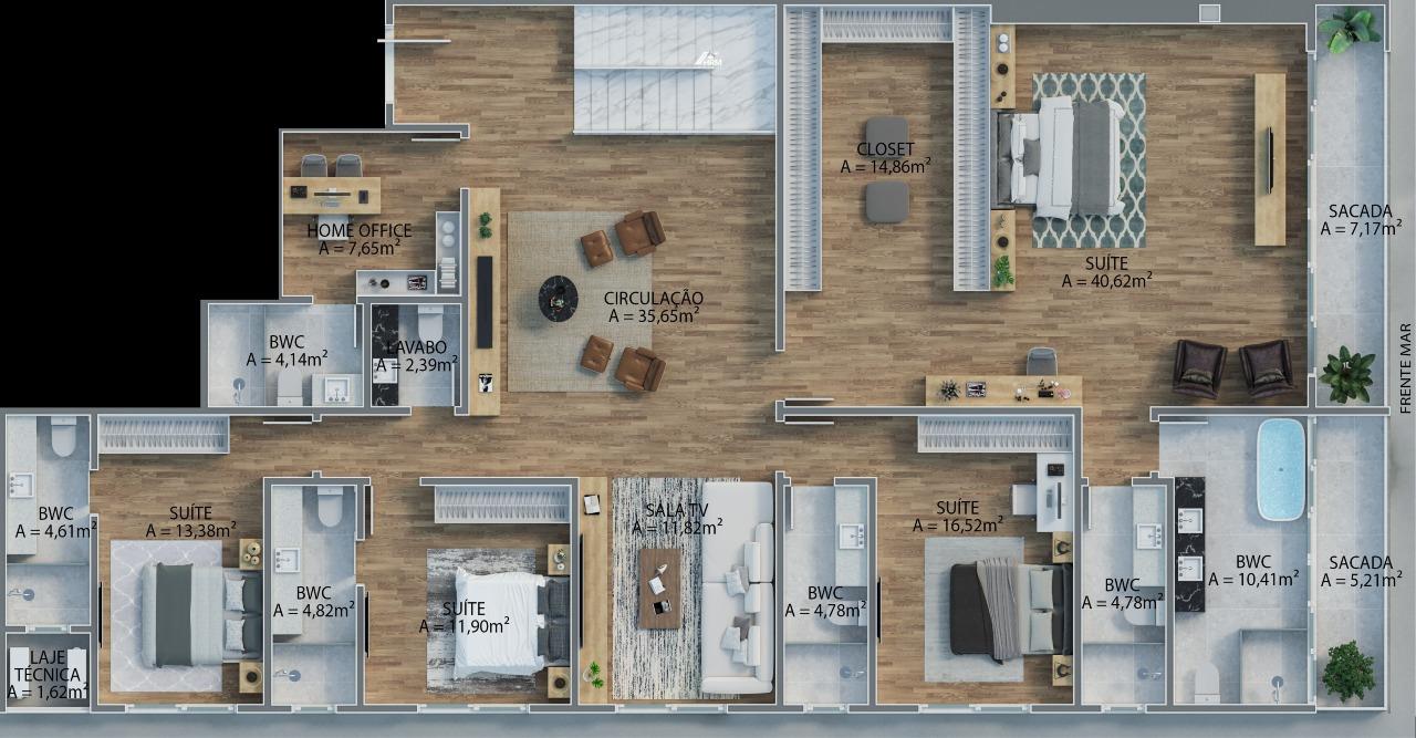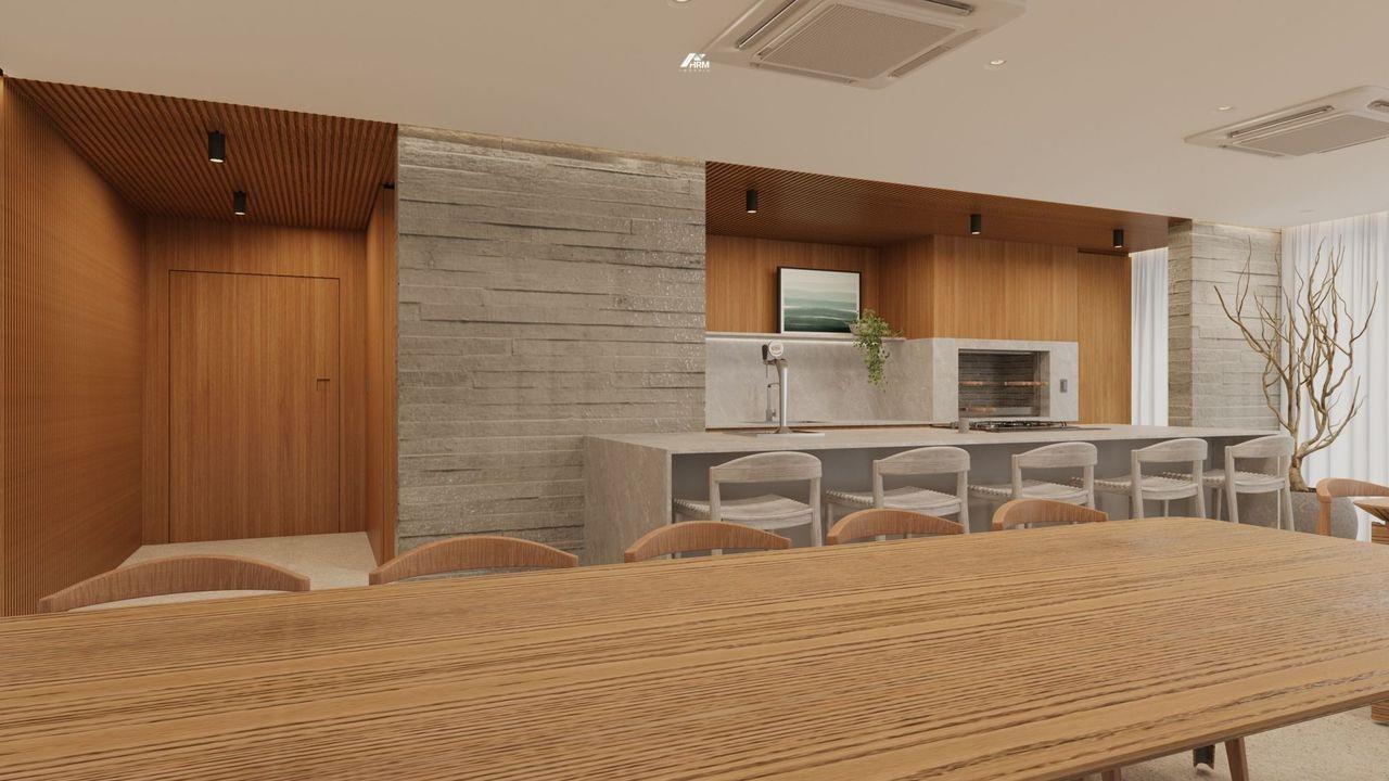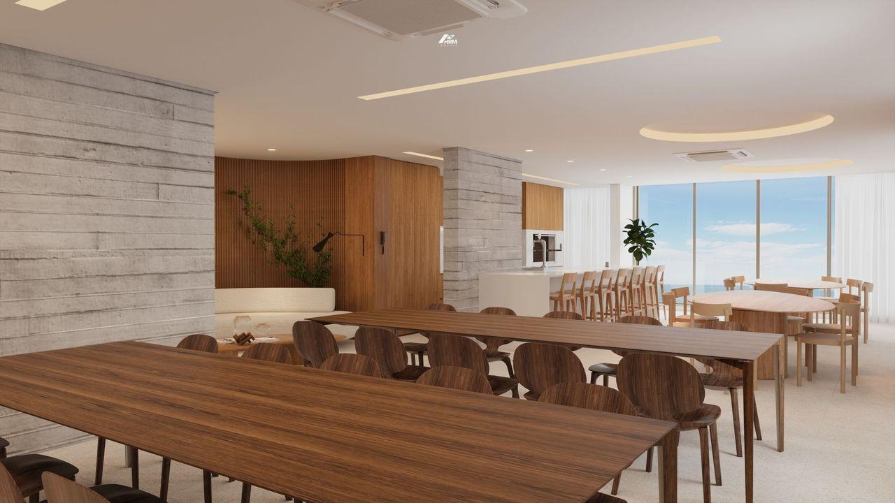 O living integrado é perfeito para receber amigos e familiares, enquanto o terraço com lareira e churrasqueira a carvão proporciona momentos únicos de lazer. A piscina privativa permite relaxar admirando a vista privilegiada de frente para o mar. Entre os diferenciais do apartamento estão o Home Office, lavabo, área de serviço, banheiro e dependência de empregada, despensa, sacada e piso aquecido nos banheiros, garantindo praticidade e conforto em todos os ambientes.